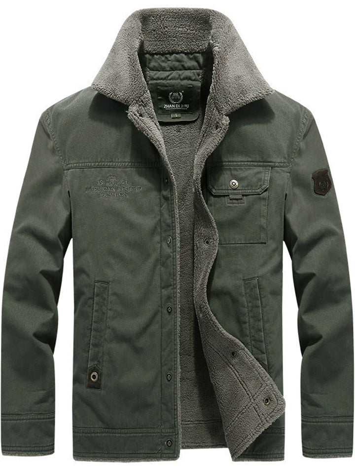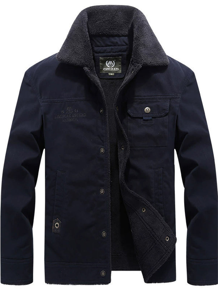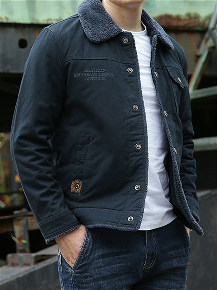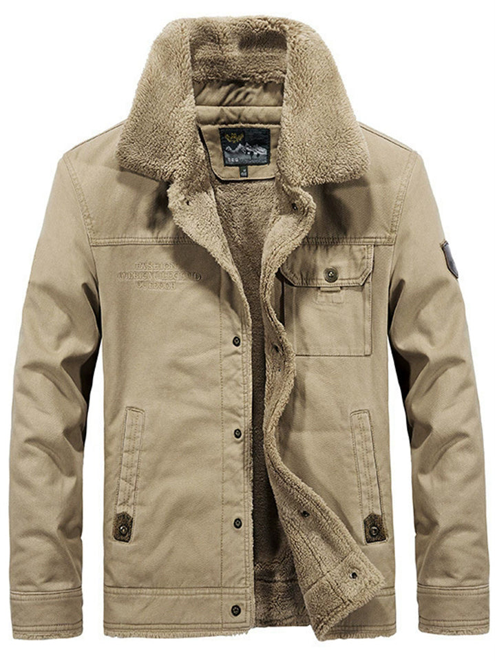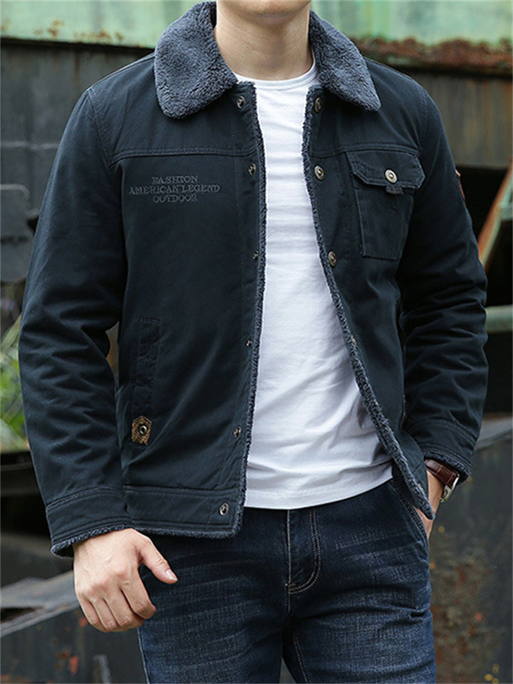 Men's Winter Fleeced Solid Color Lapel Pockets Cargo Coats