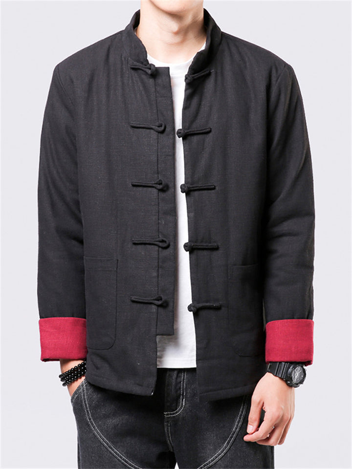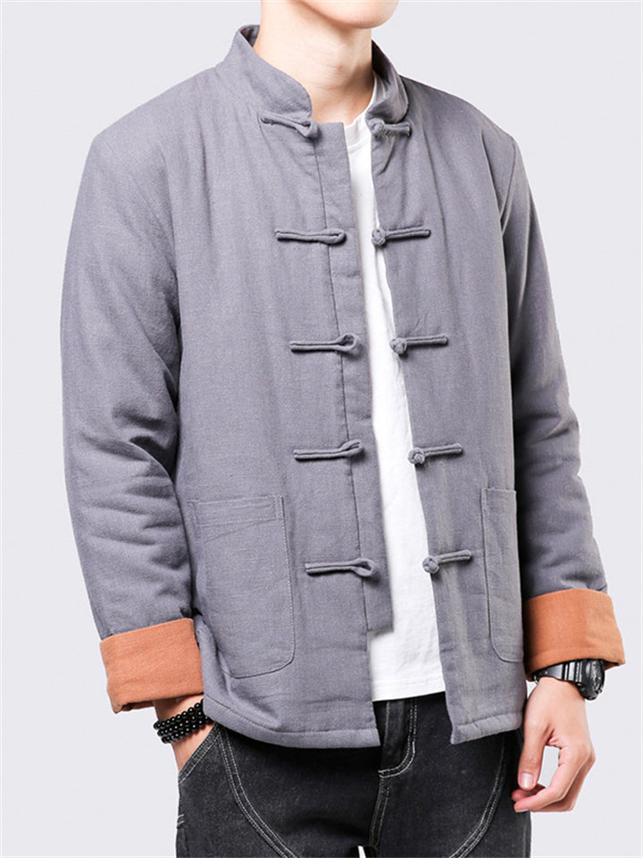 Men's Winter Plain Tang Suit Knot Button Cotton Coat