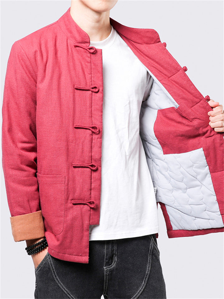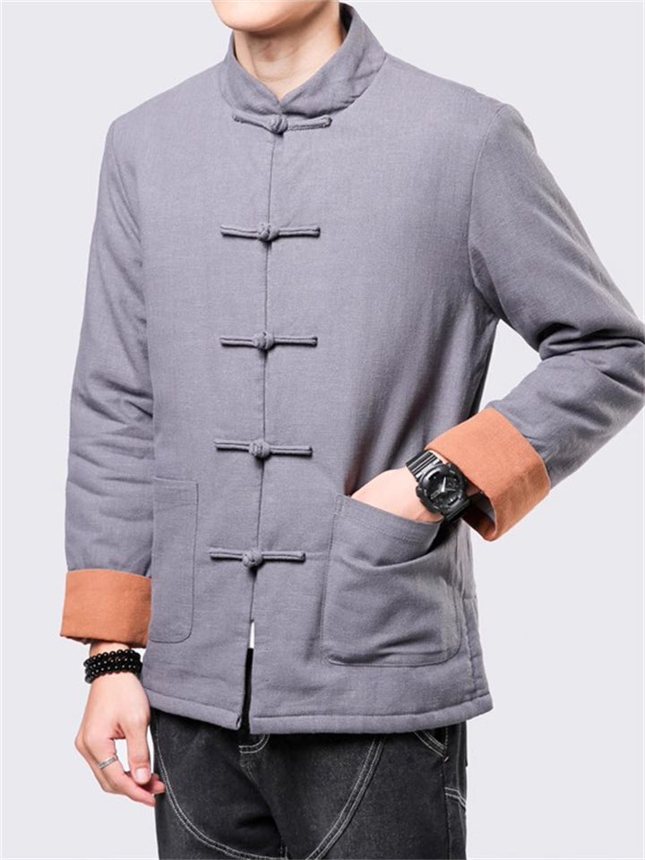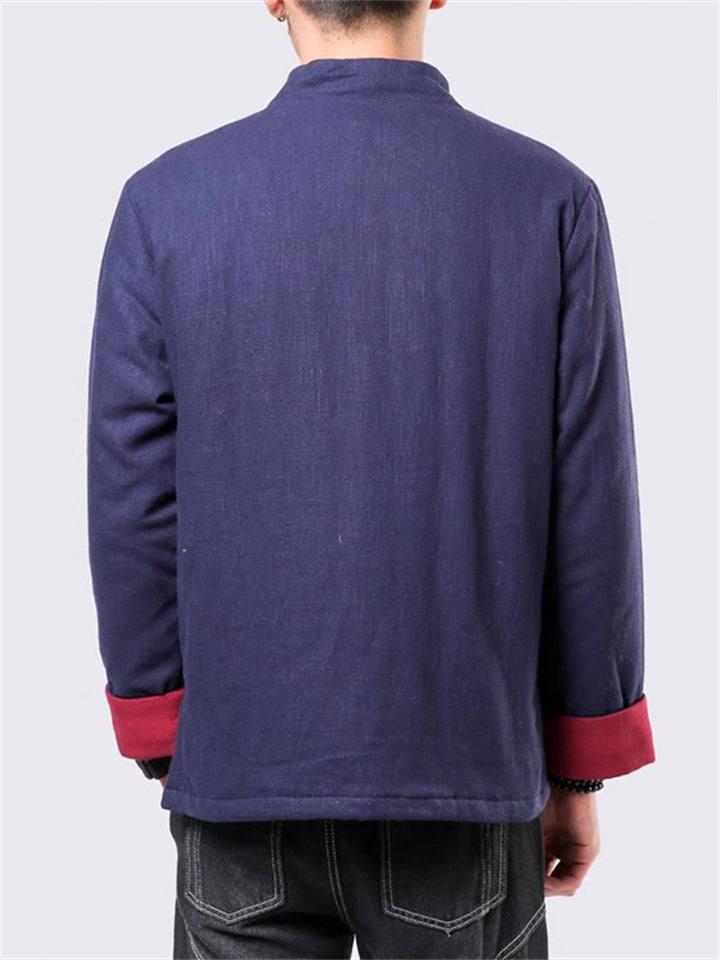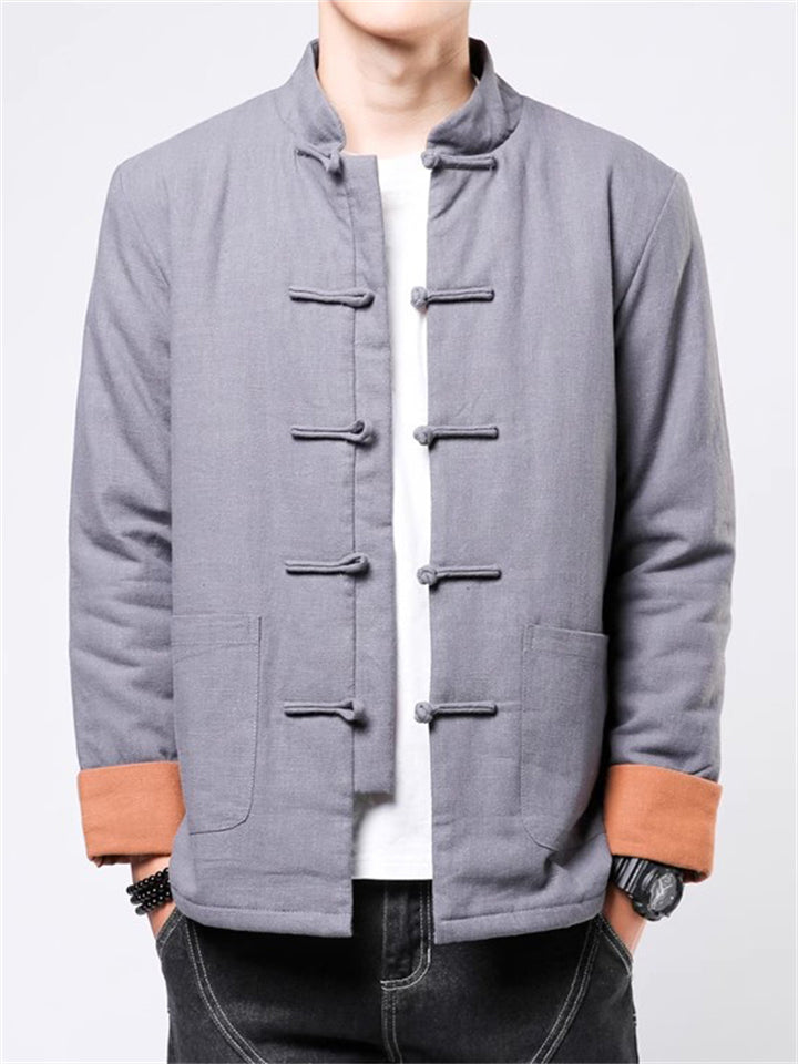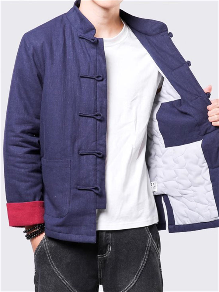 Men's Winter Vintage Solid Color Tangsuit Padded Quilted Coats
