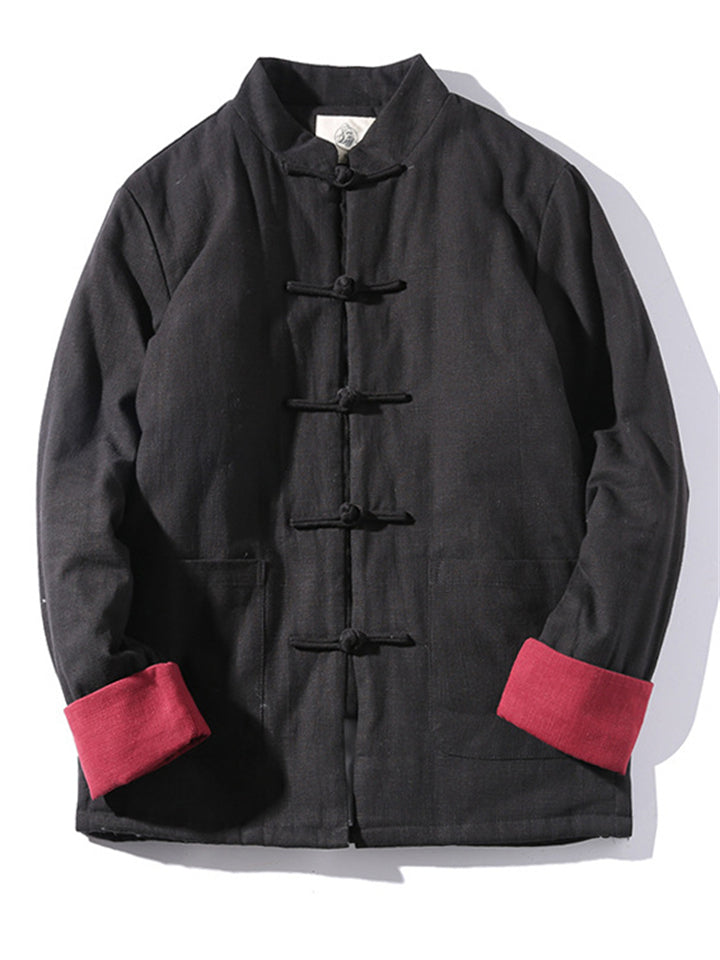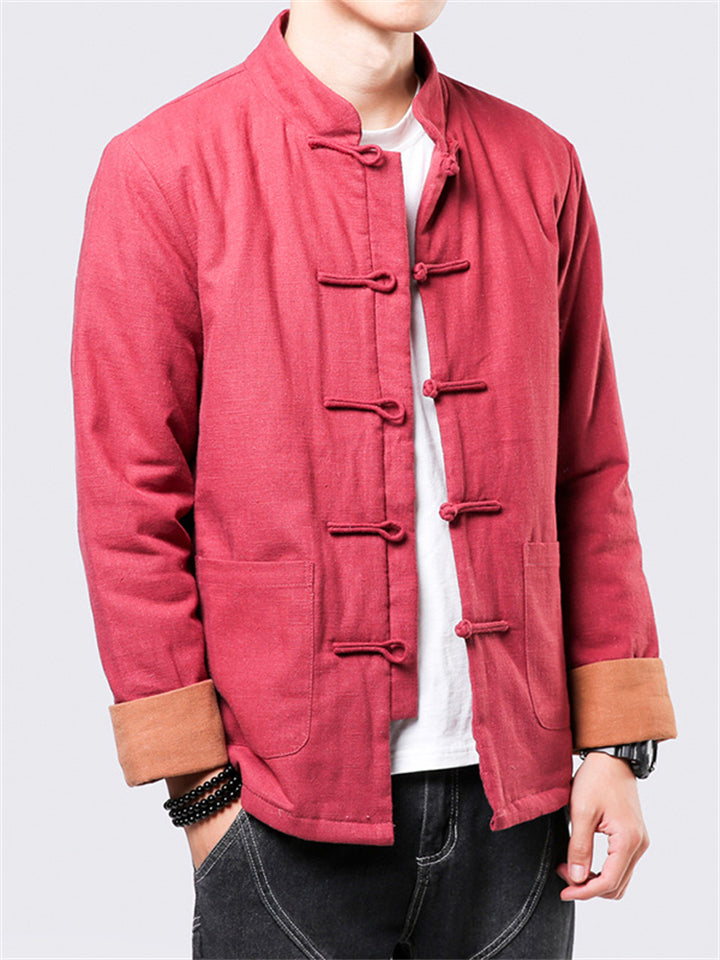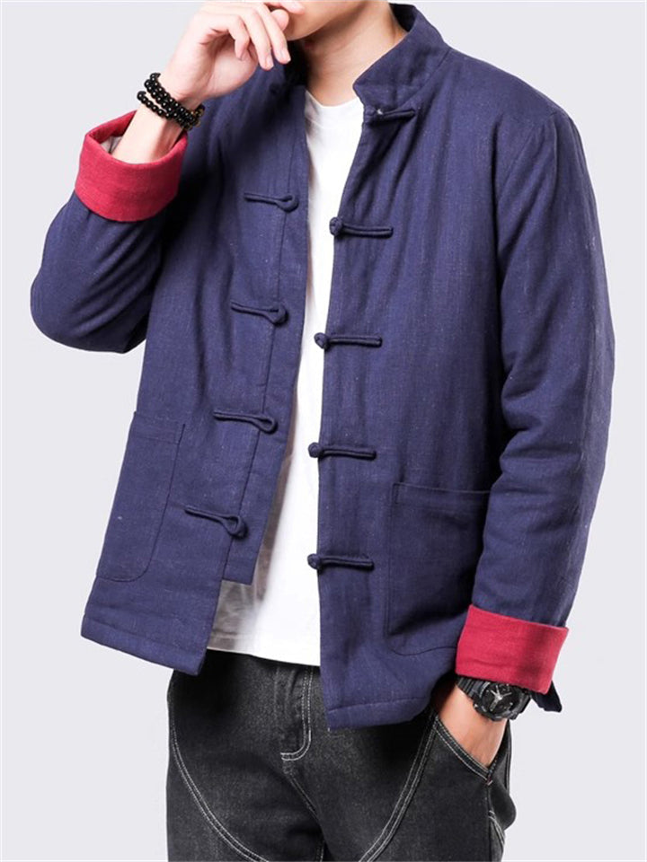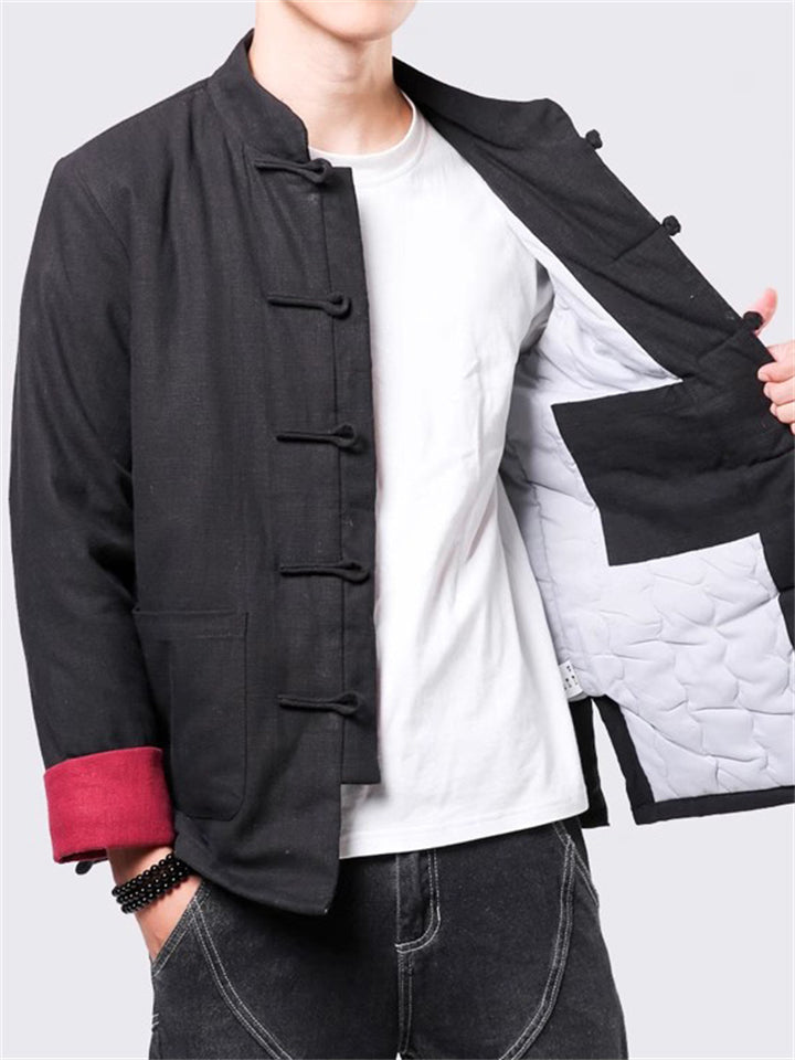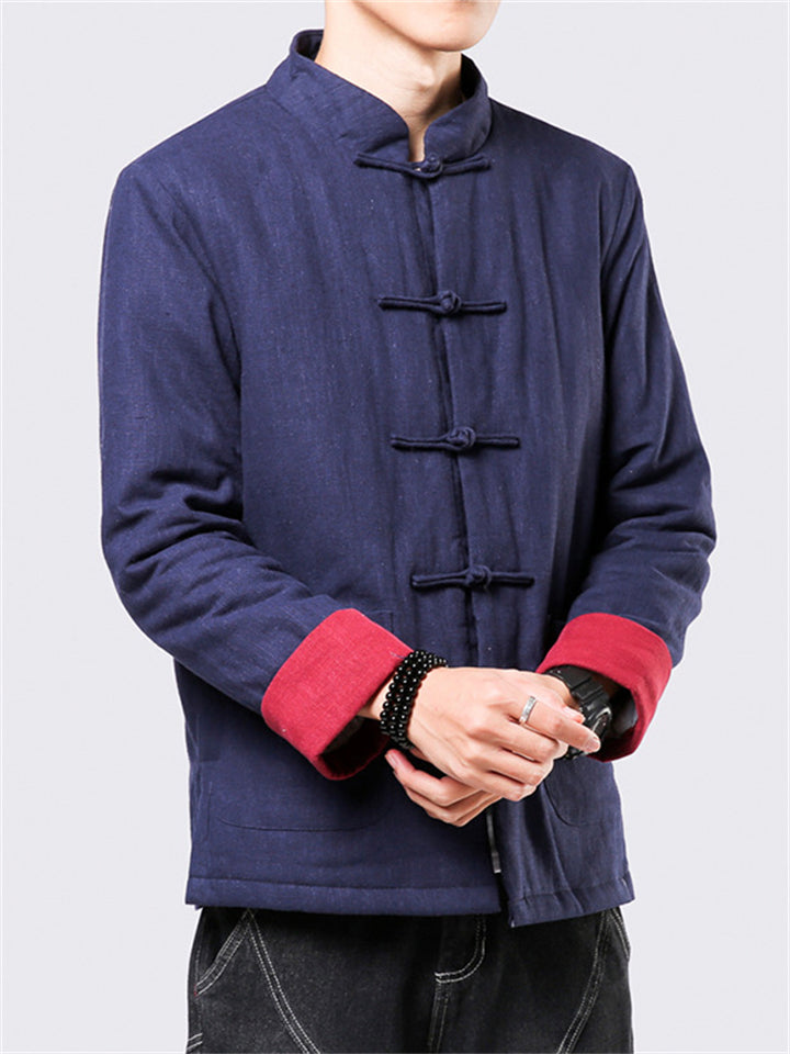 Men's Winter Vintage Solid Color Tangsuit Padded Quilted Coats