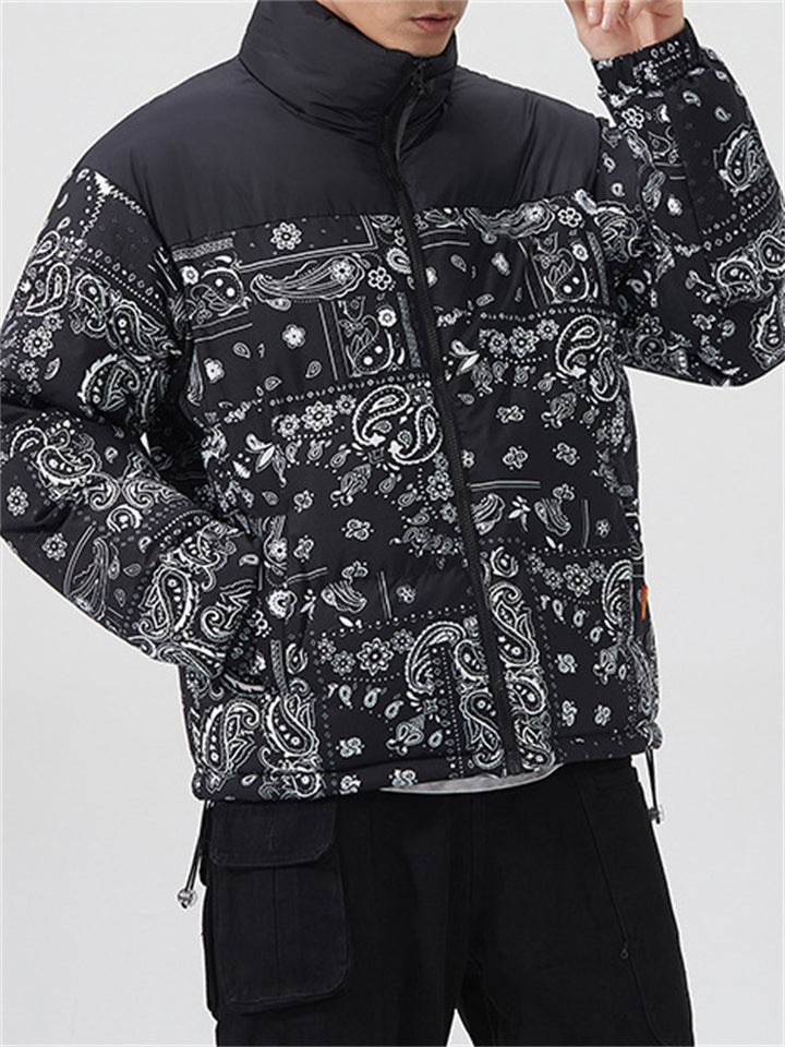 Men's Winter Chinese Style Floral Printed Cotton-padded Tangsuit Coat