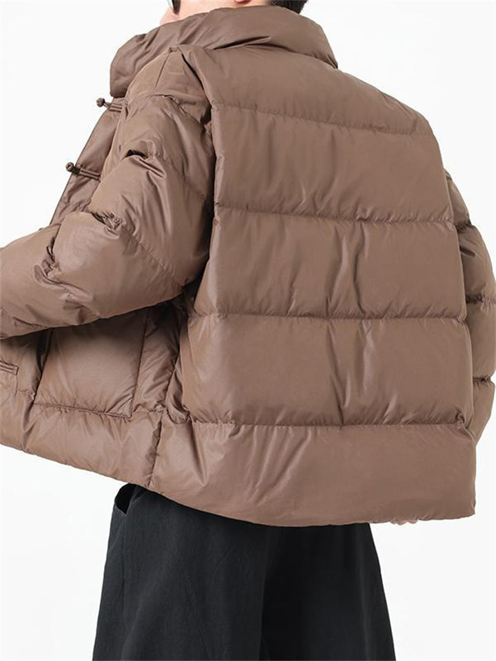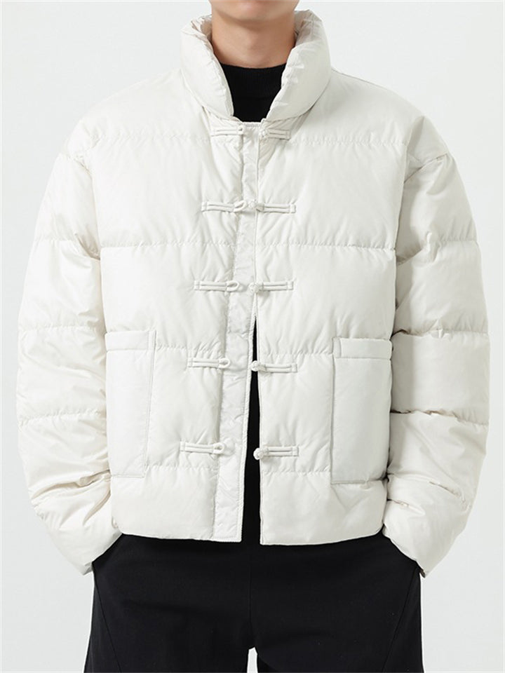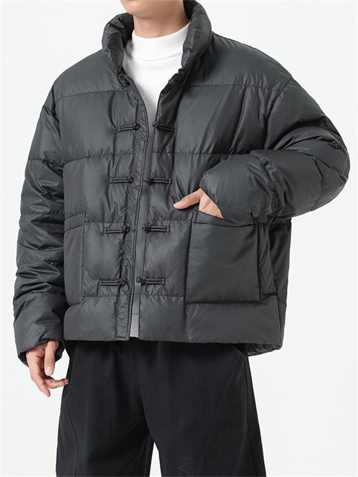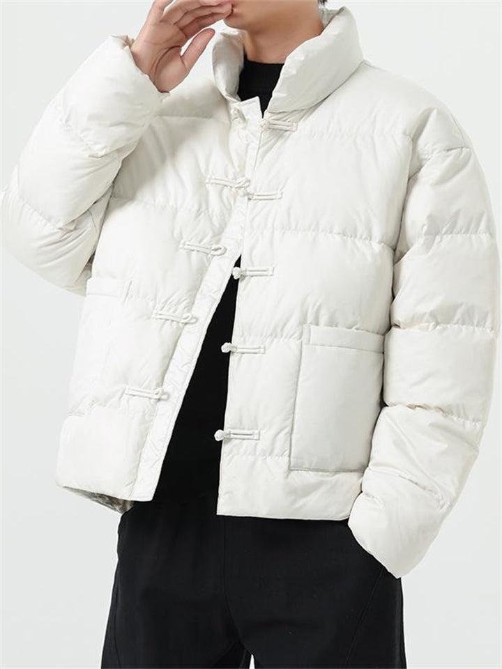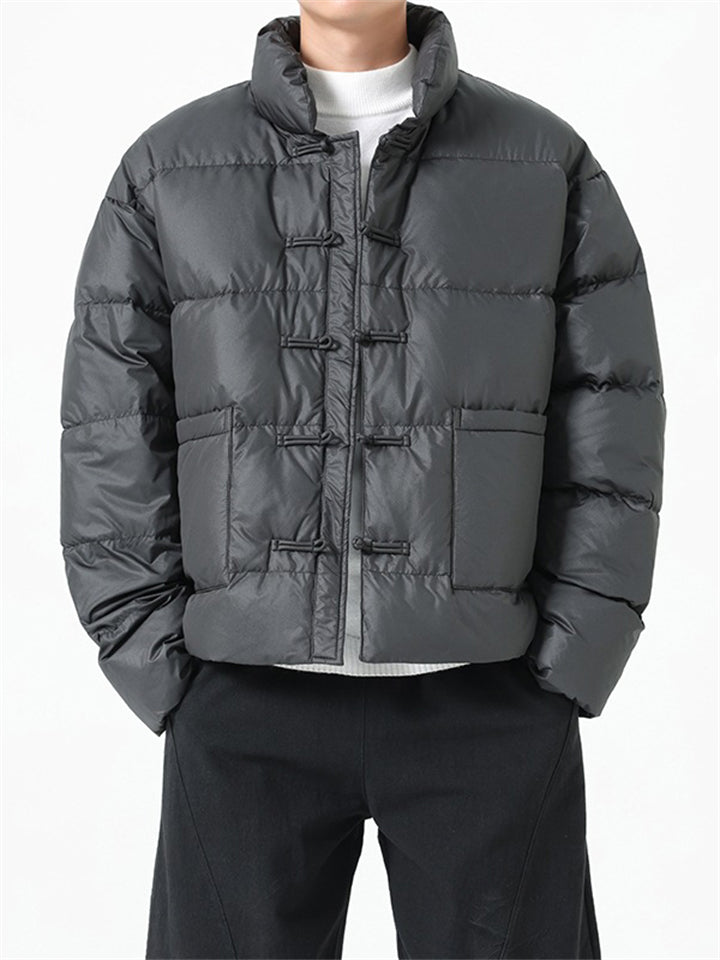 Men's Winter Vintage Solid Color Tangsuit Padded Quilted Coats