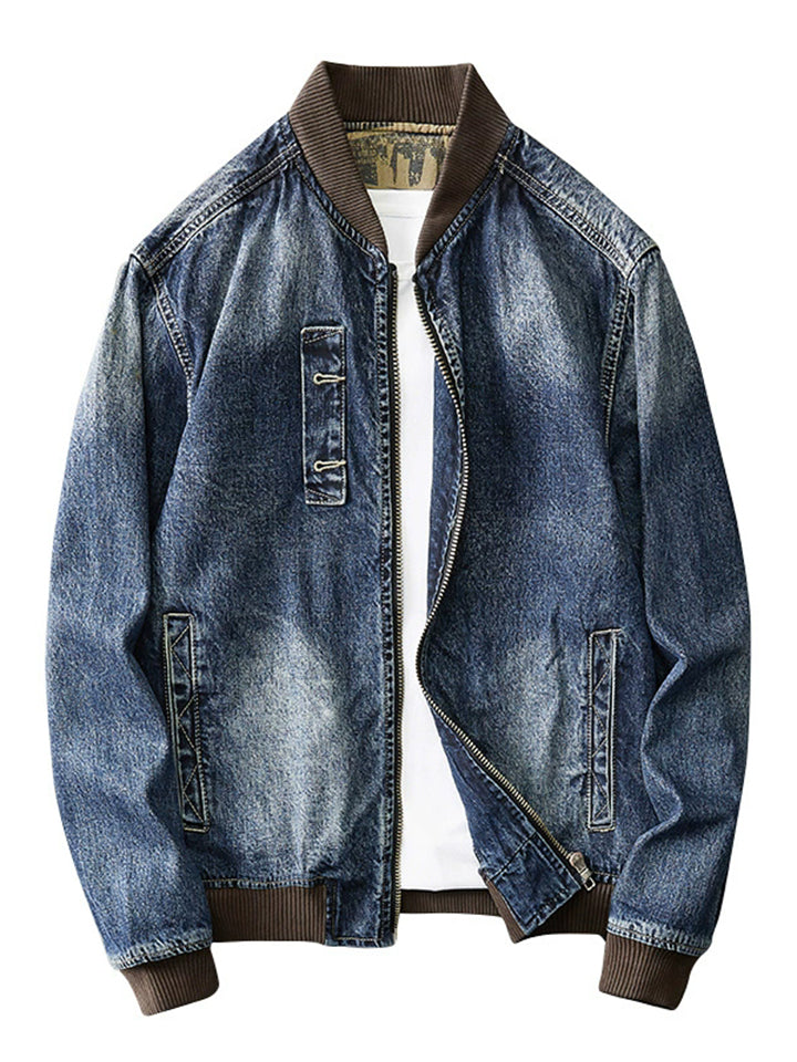 Men's Casual Distressed Streetwear Denim Bomber Jackets with Pockets