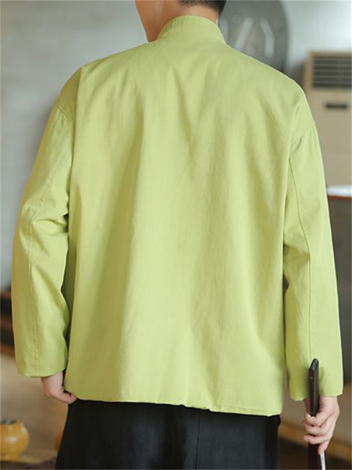 Men's Autumn Solid Color Corduroy Zen Style Lace Up Cardigan Jackets