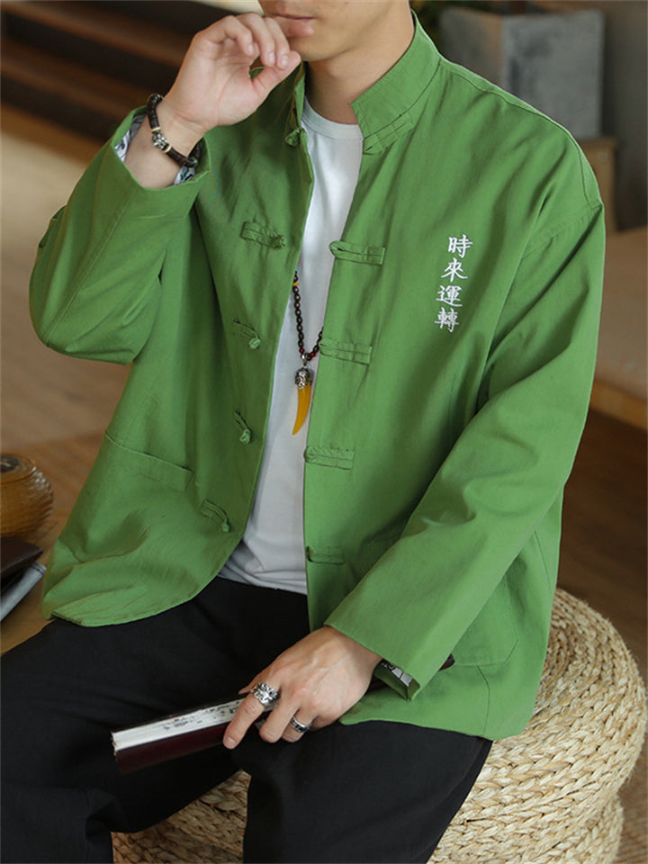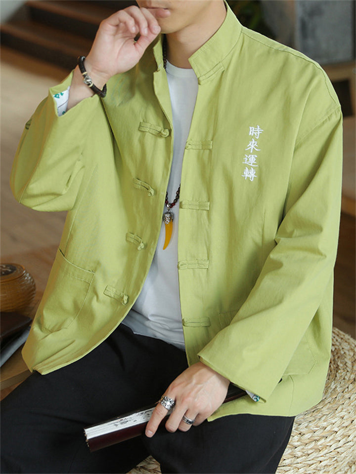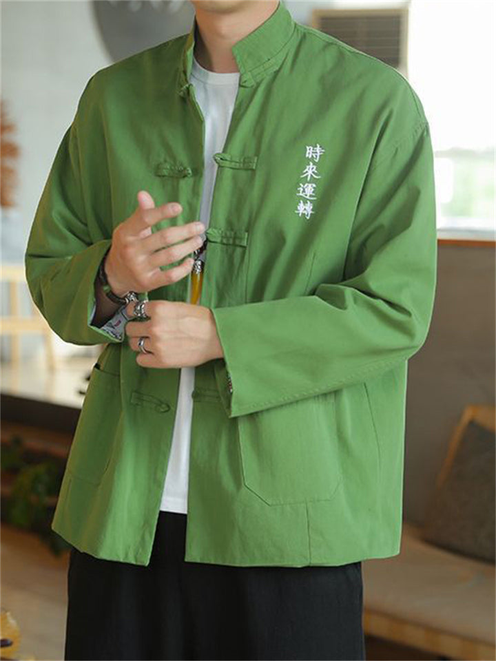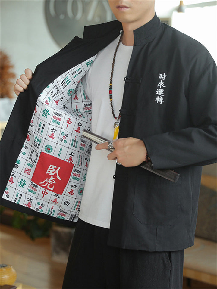 Men's Autumn Cartoon Loong Print Stand Collar Tangsuit Cardigan Jackets