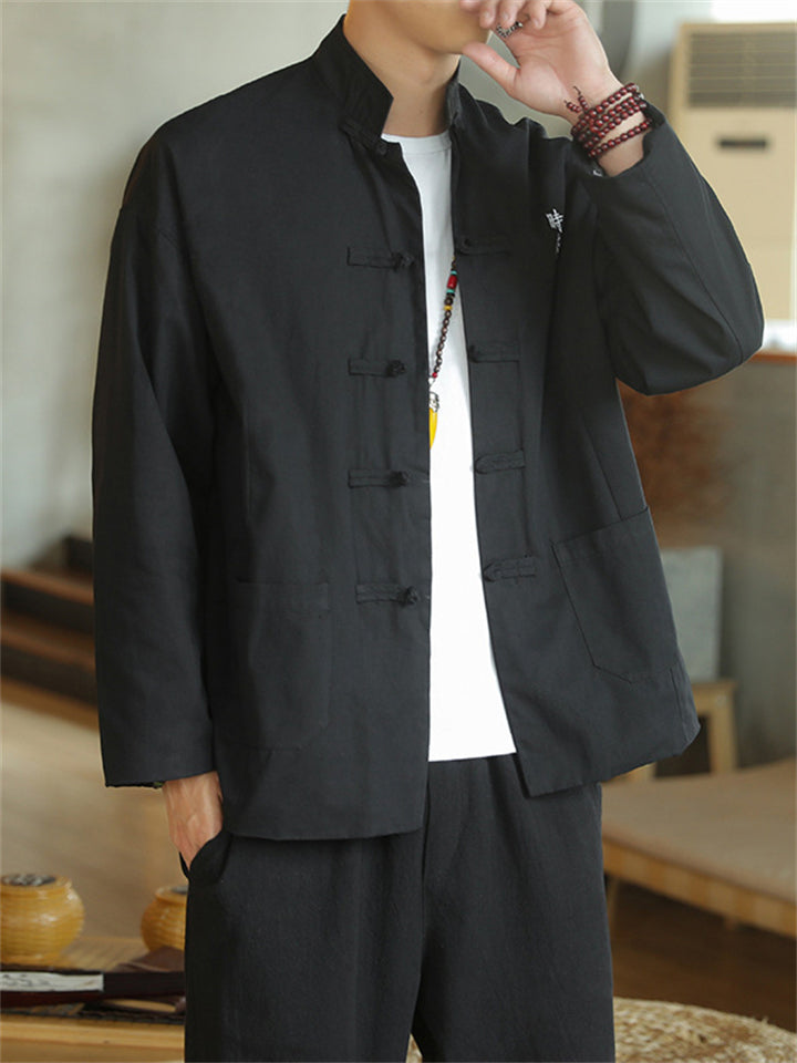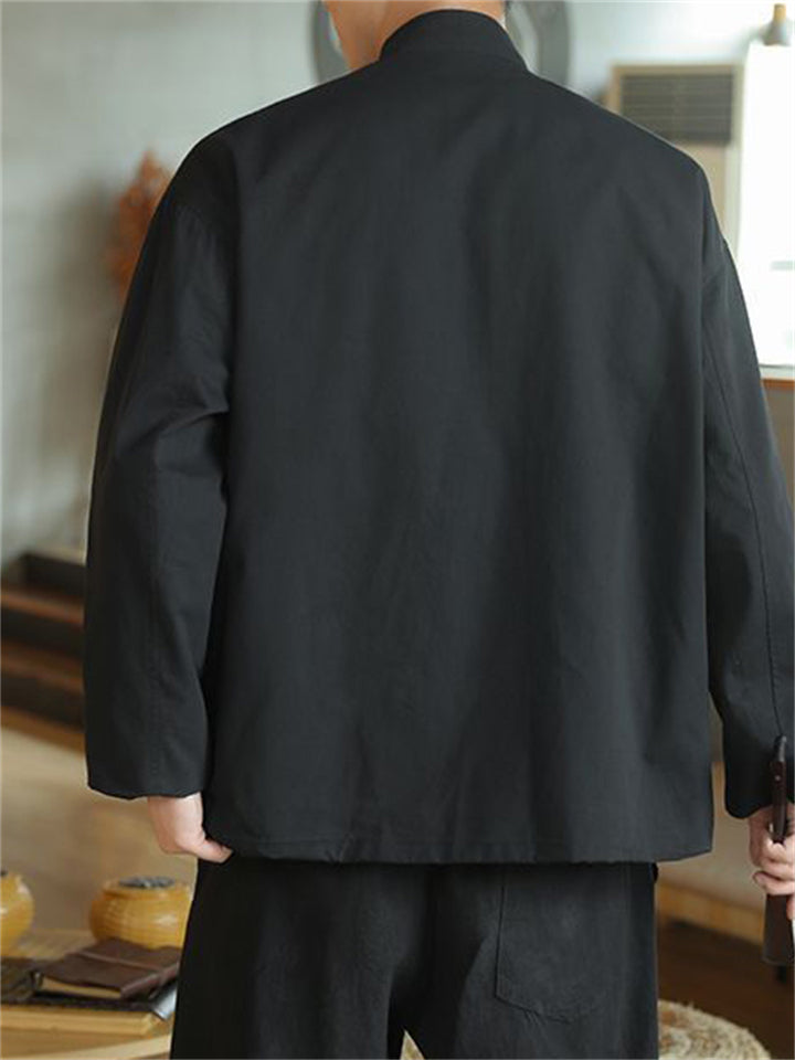 Men's Autumn Chinese Zen Style Black Long Sleeve Cardigan Jackets