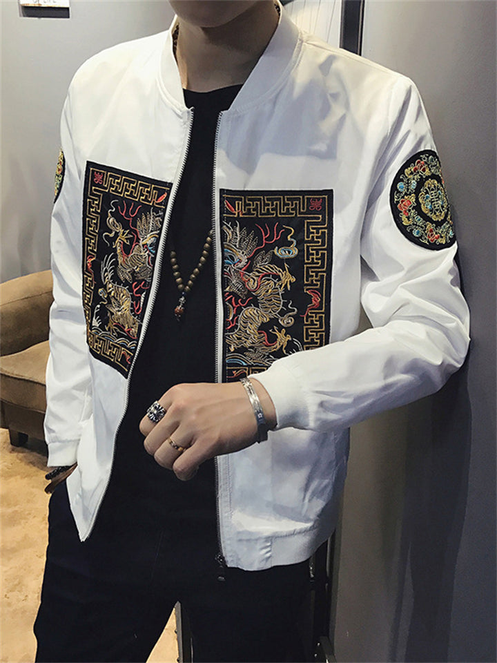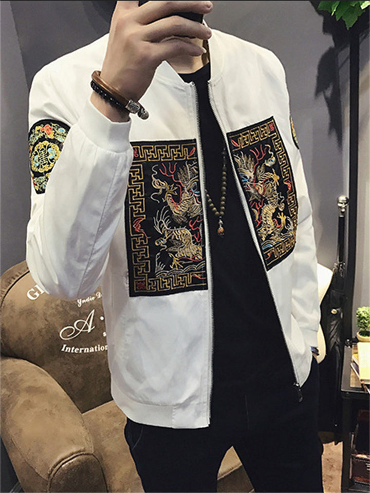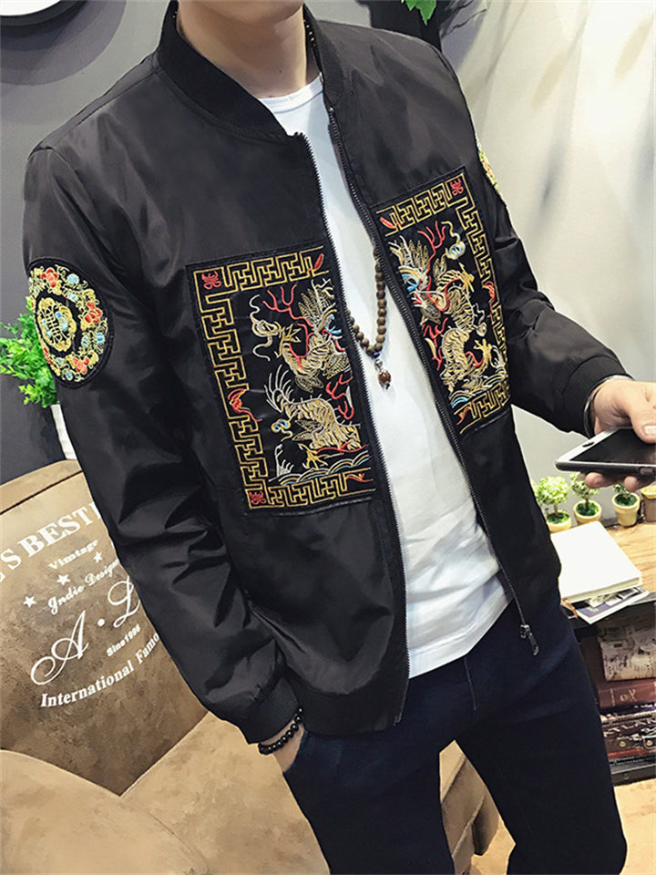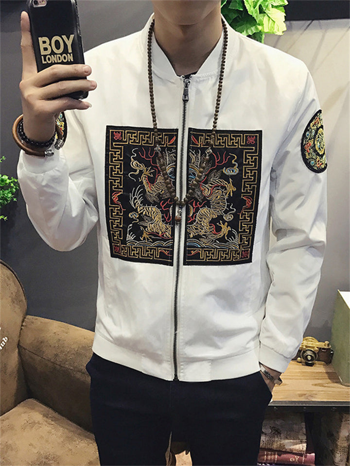 Men's Autumn Cartoon Loong Print Stand Collar Tangsuit Cardigan Jackets