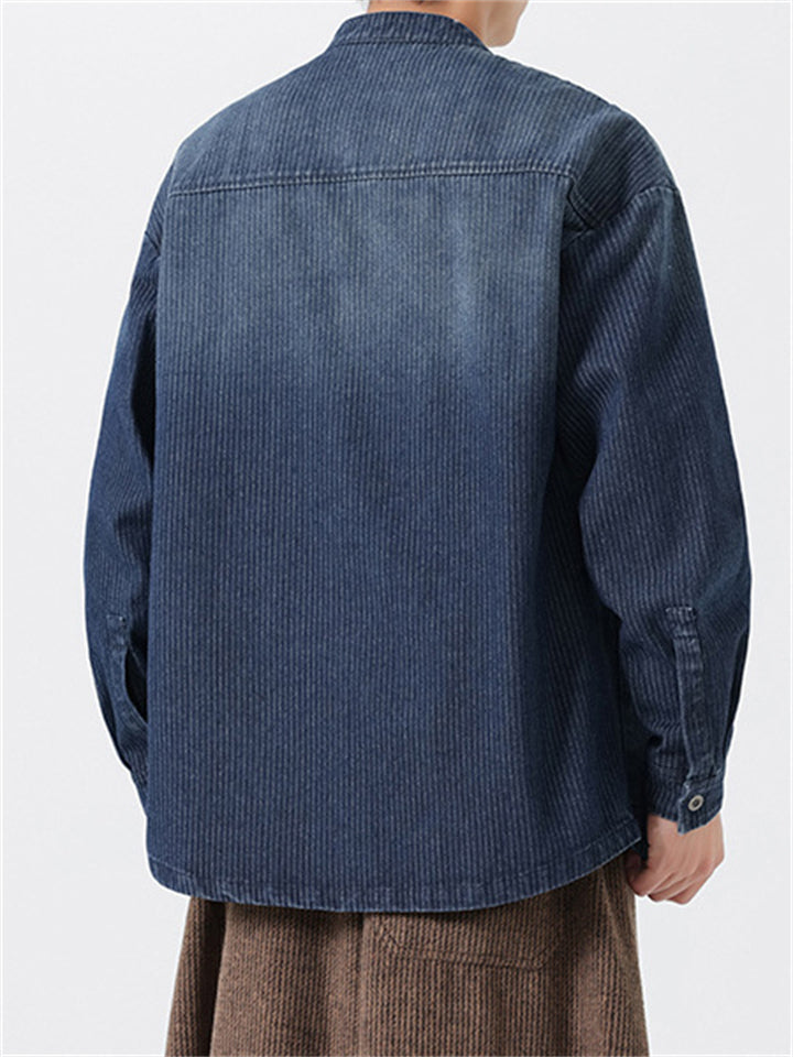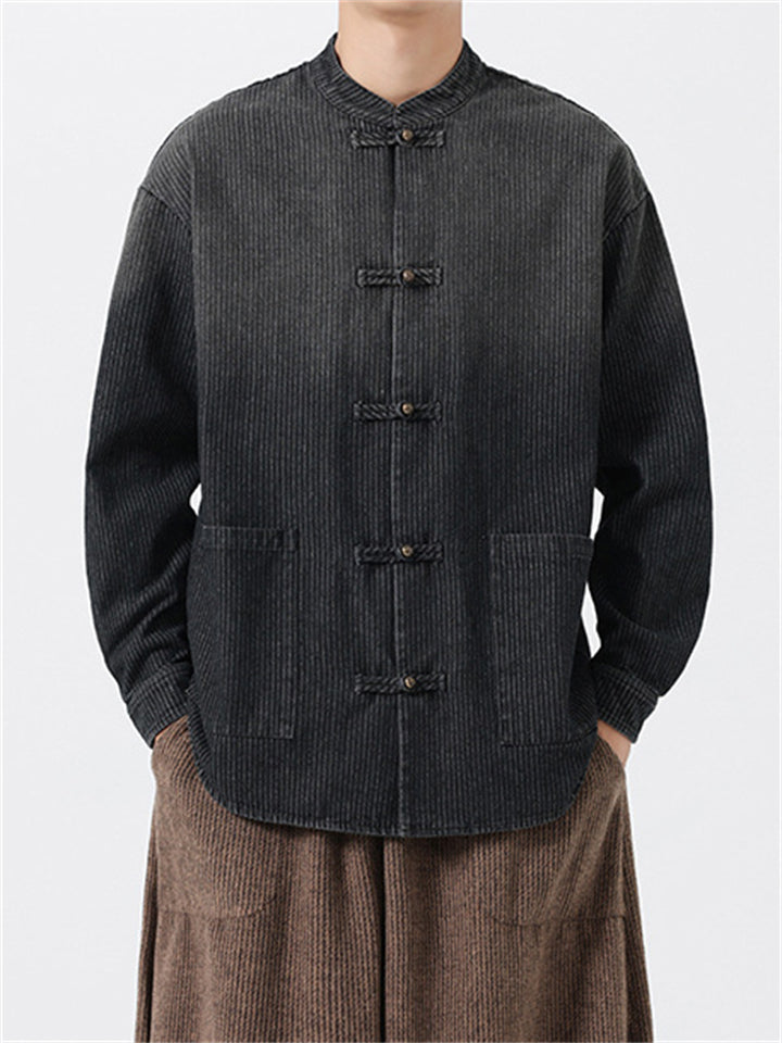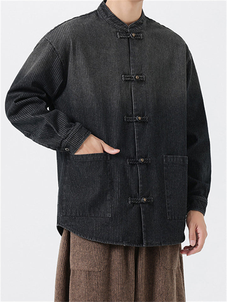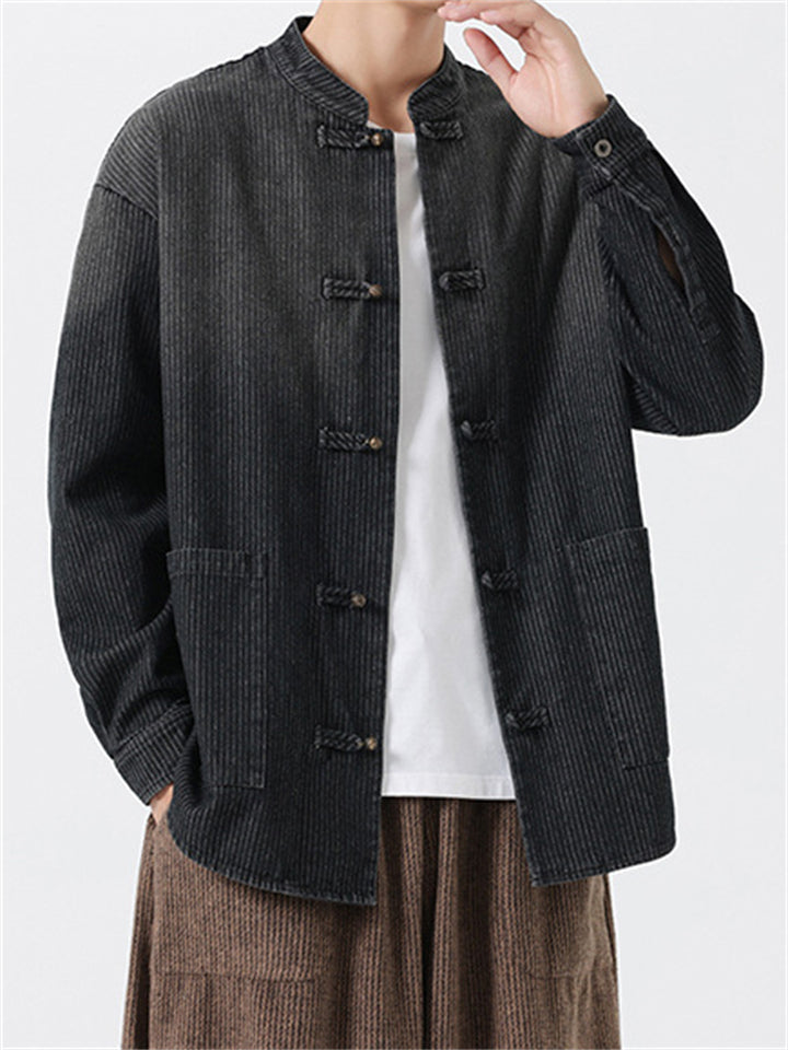 Men's Retro Chinese Style Contrast Stand Collar Corduroy Tangsuit Jackets