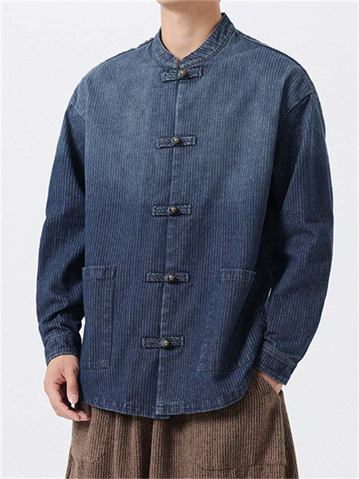 Chinese Style Retro Loose Frog Button Denim Jacket for Men