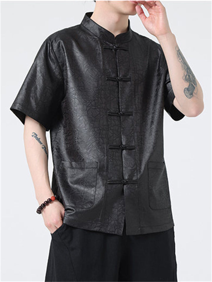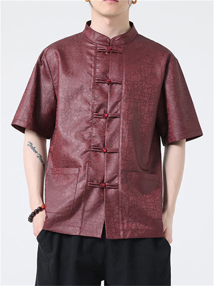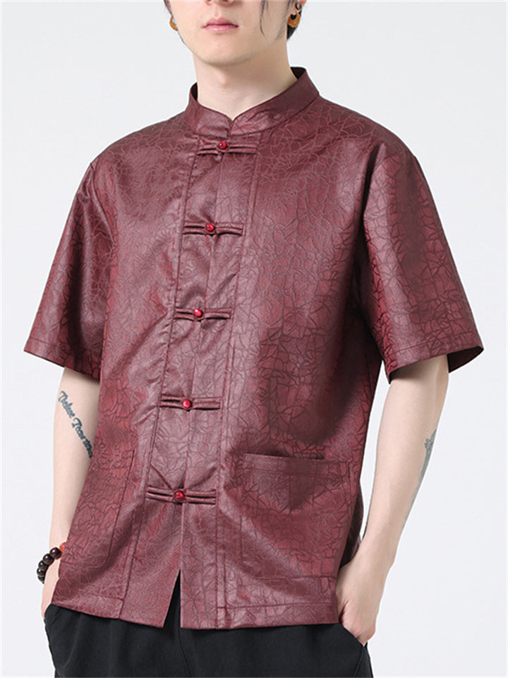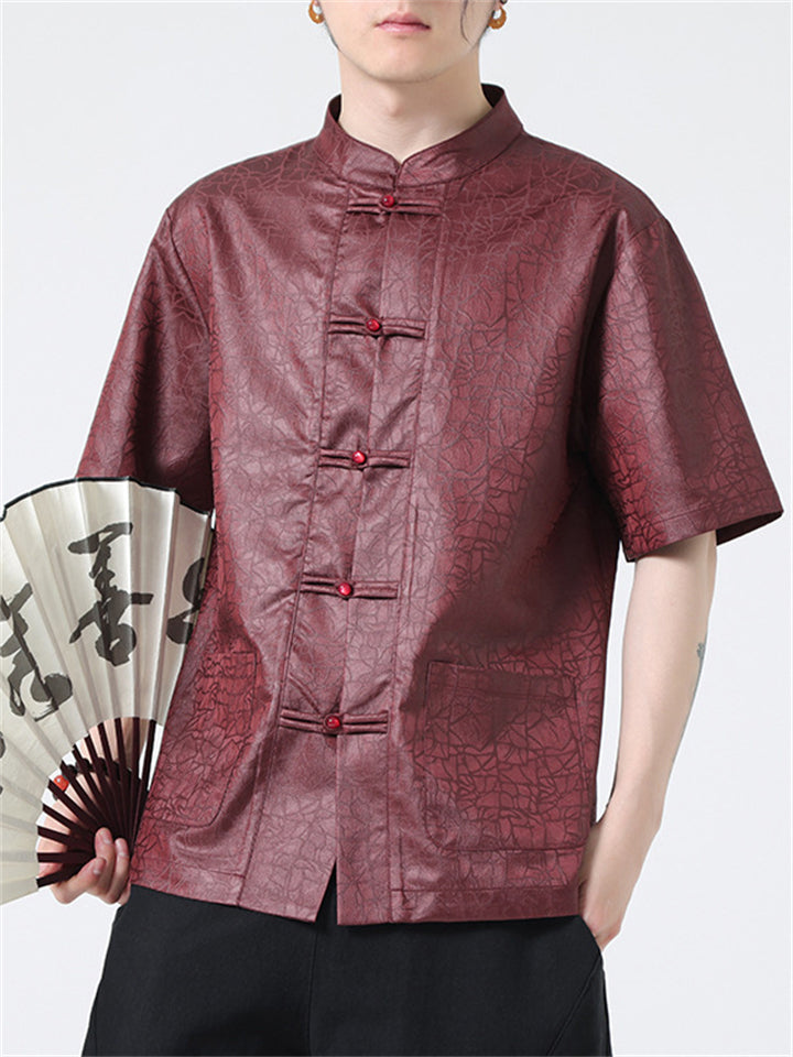 Chinese Style Texture Pattern Stand Collar Tang Suit Shirt