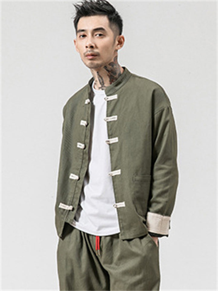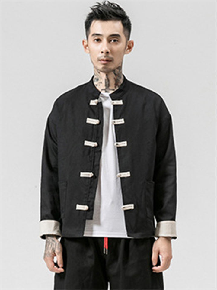 Men's Autumn Chinese Zen Style Black Long Sleeve Cardigan Jackets