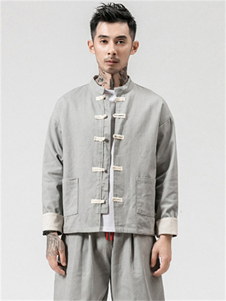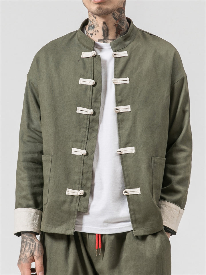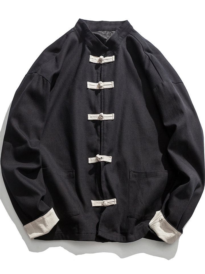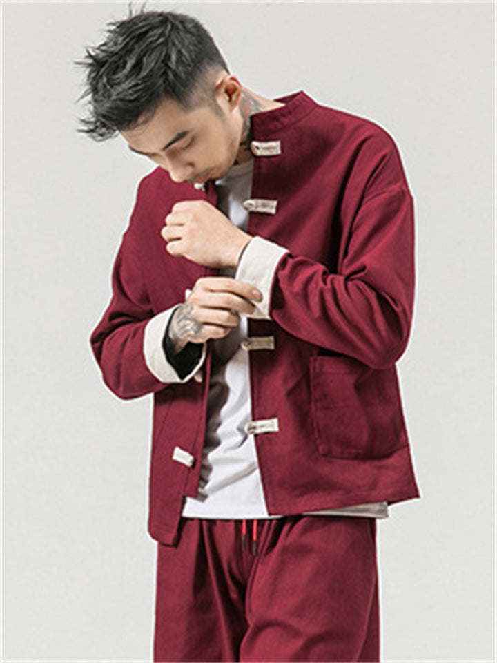 Men's Autumn Chinese Style Corduroy Contrast Color Tangsuit Jackets
