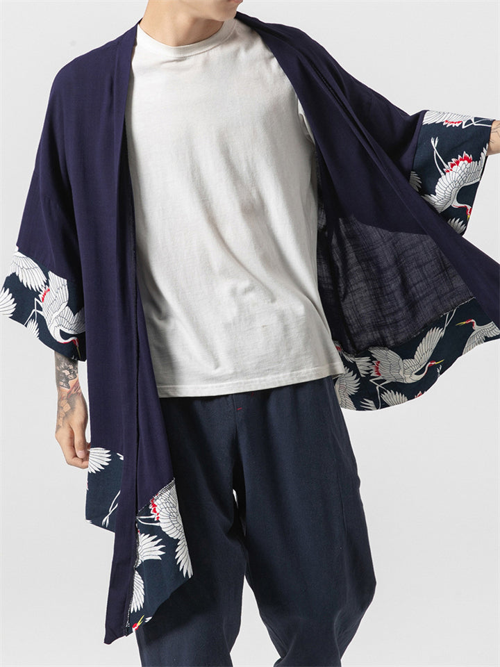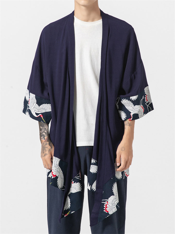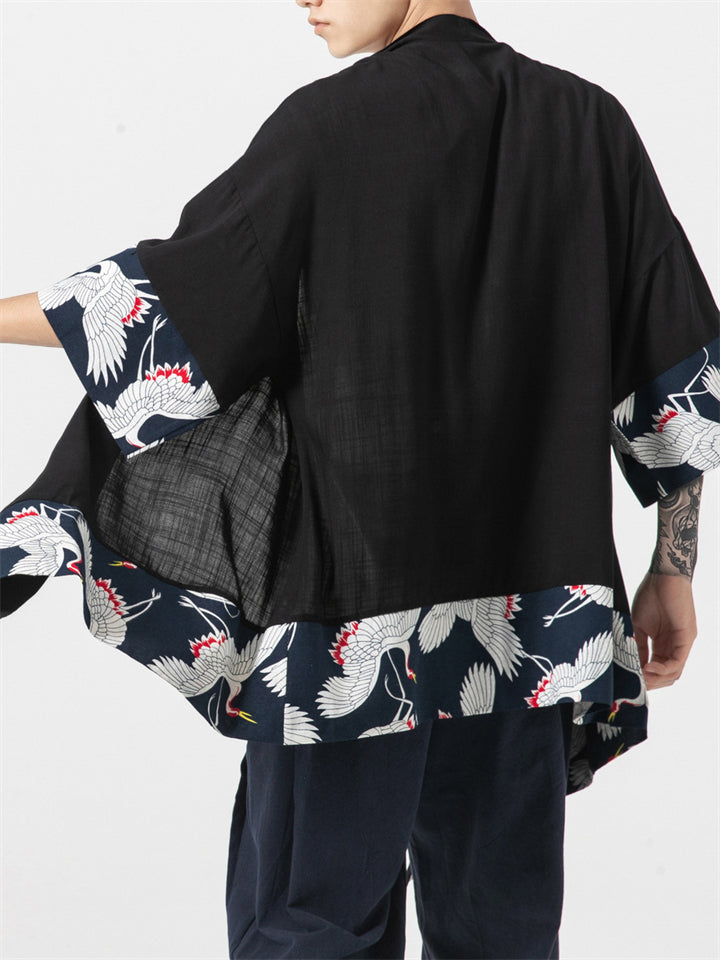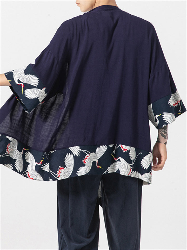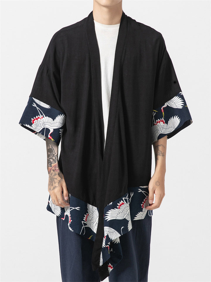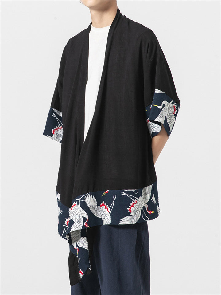 Crane Splicing Irregular Hem Men's Sun-protective Jackets