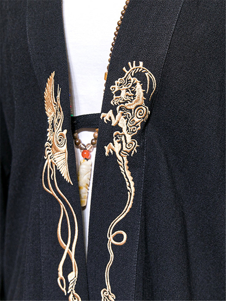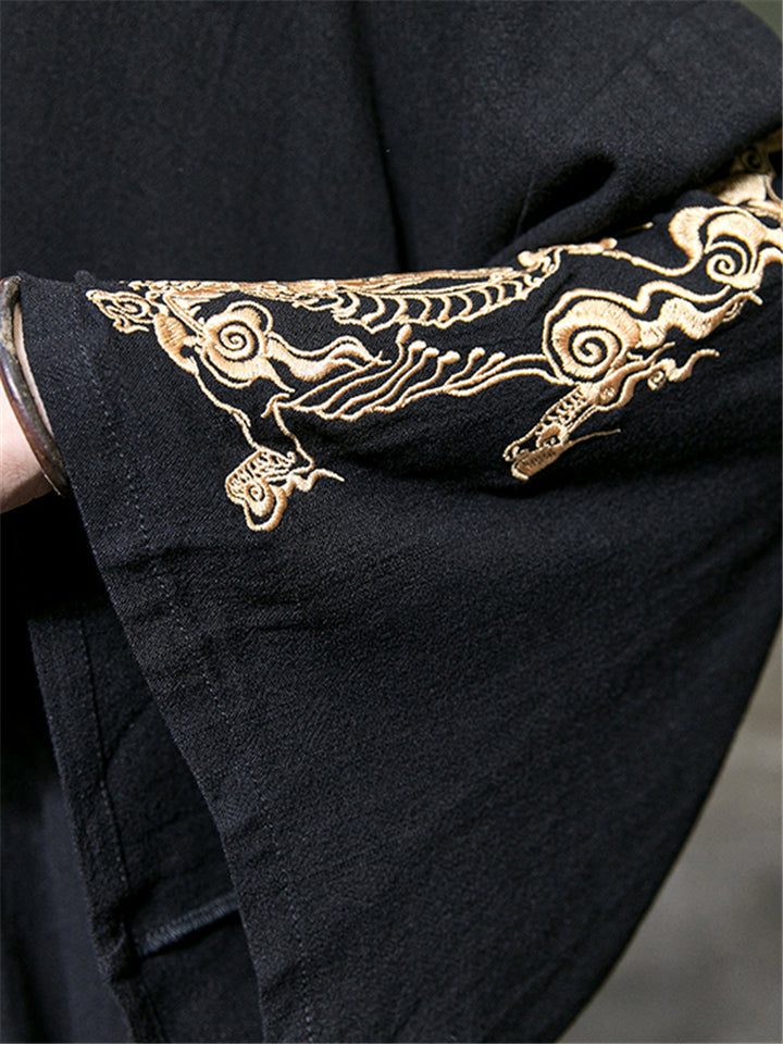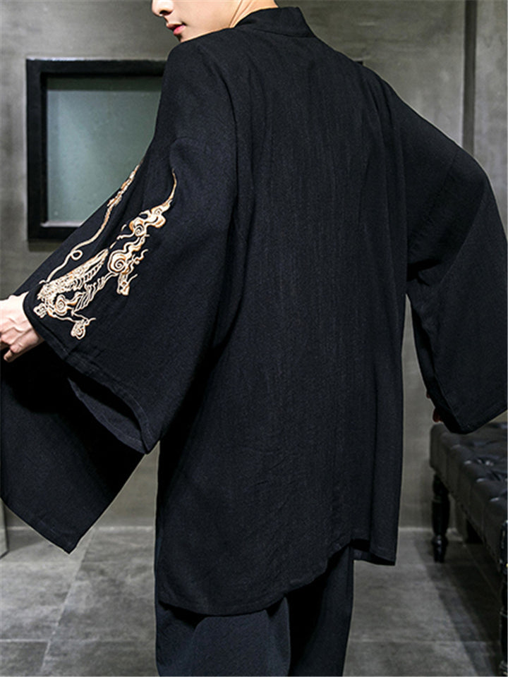 Men's Autumn Chinese Zen Style Black Long Sleeve Cardigan Jackets