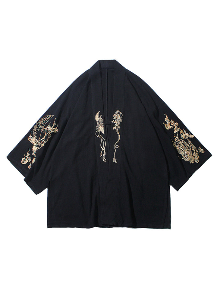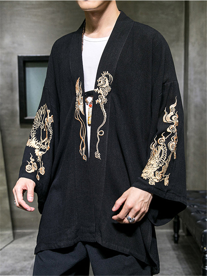 Men's Autumn Cartoon Loong Print Stand Collar Tangsuit Cardigan Jackets