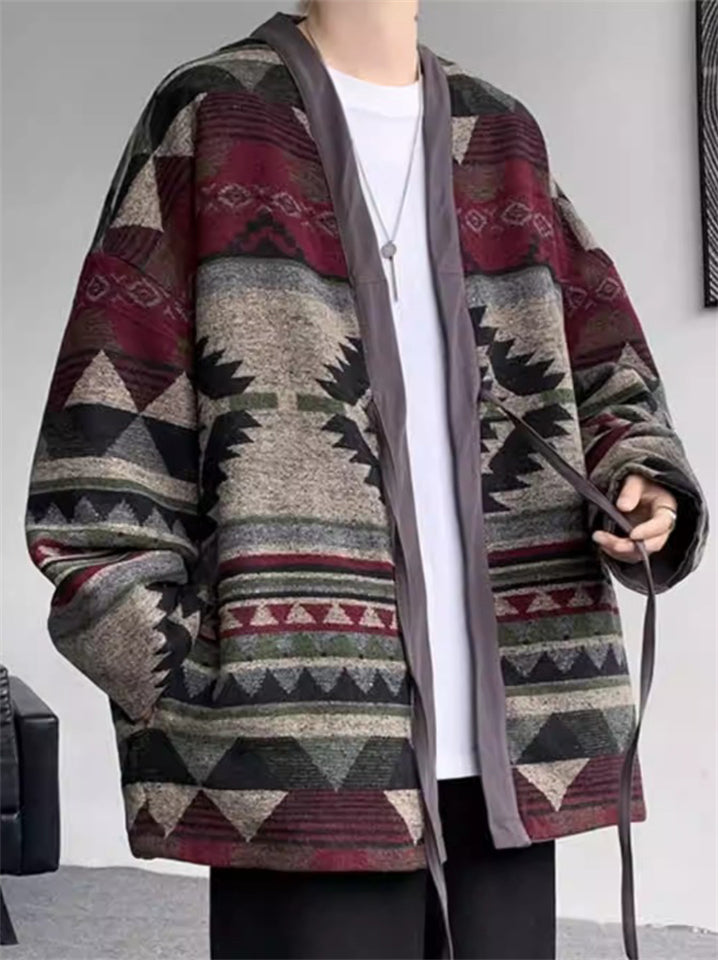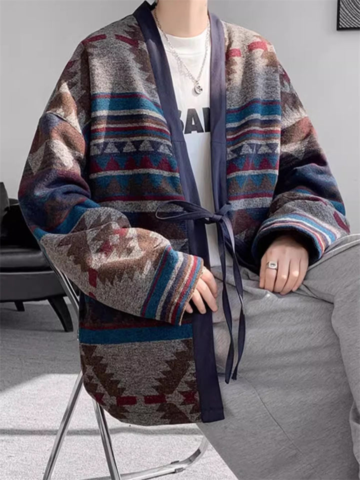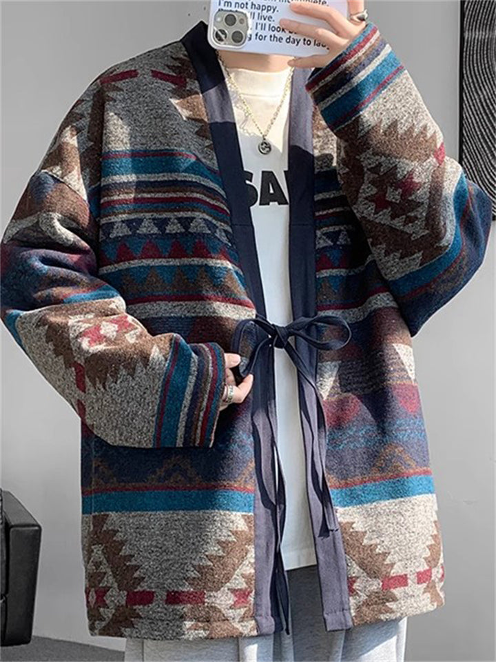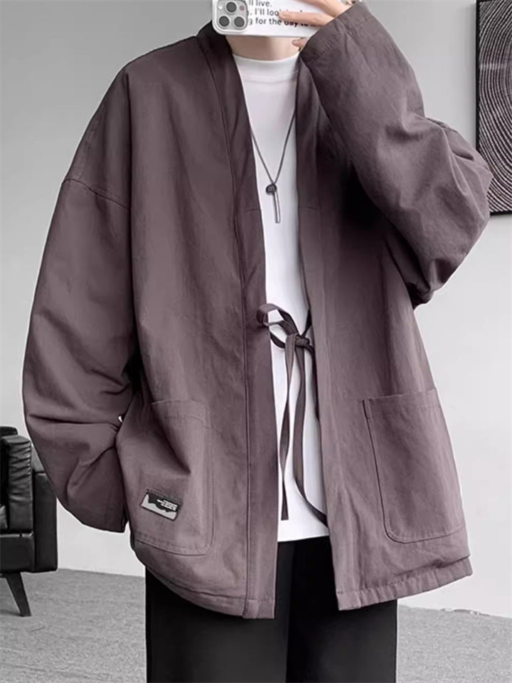 Men's Autumn Solid Color Corduroy Zen Style Lace Up Cardigan Jackets