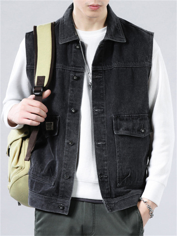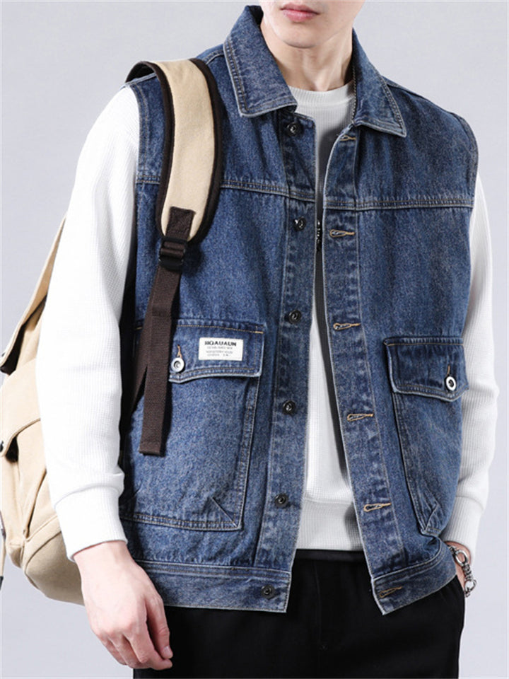Male Casual Popular Wearable Daily Denim Vest Jacket