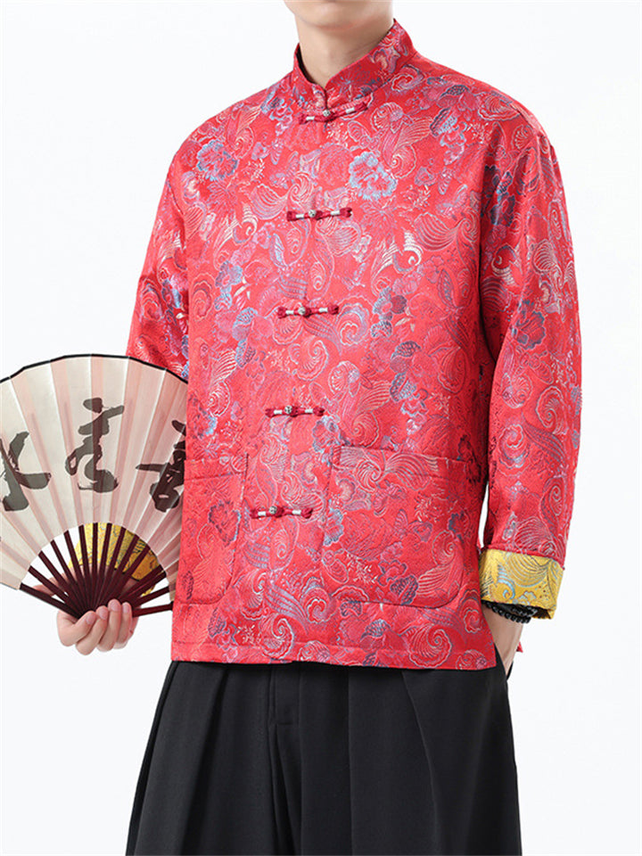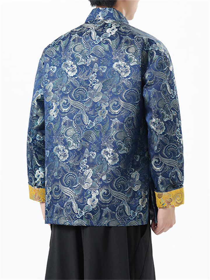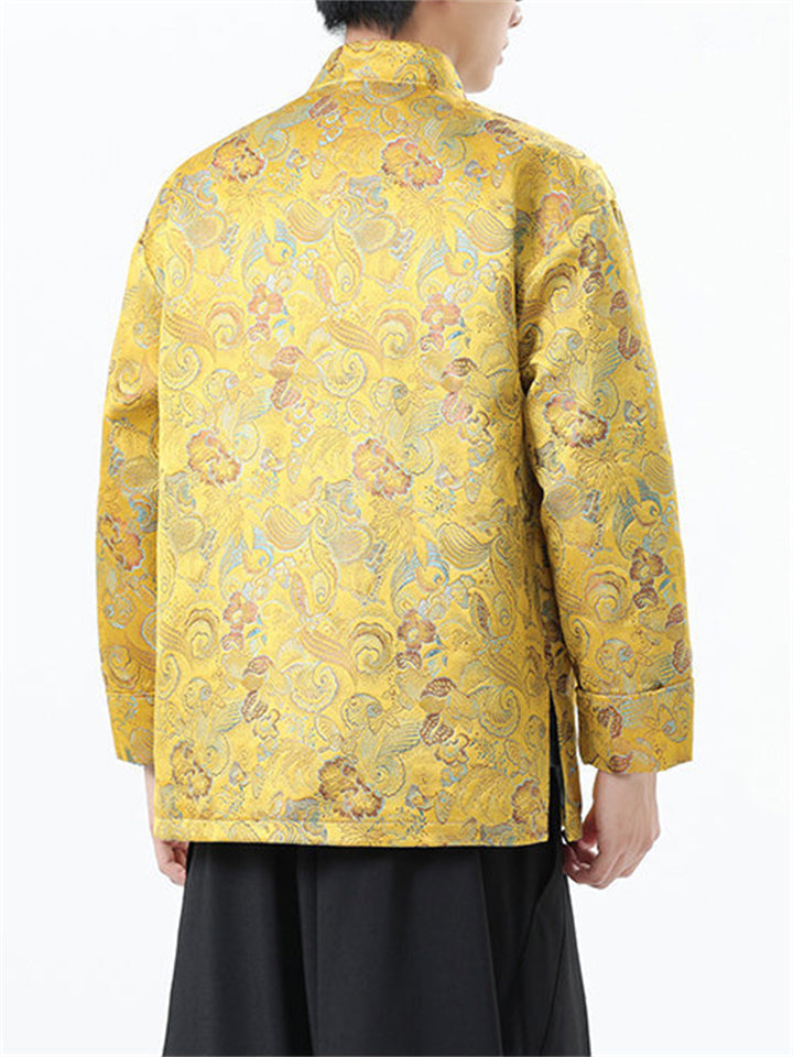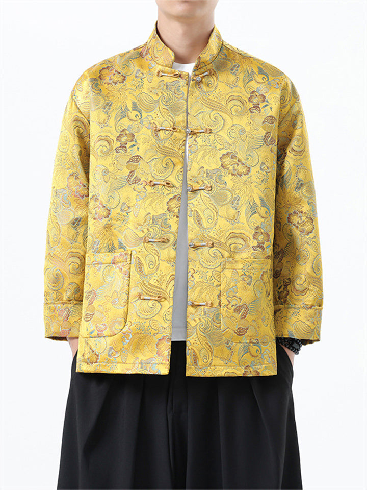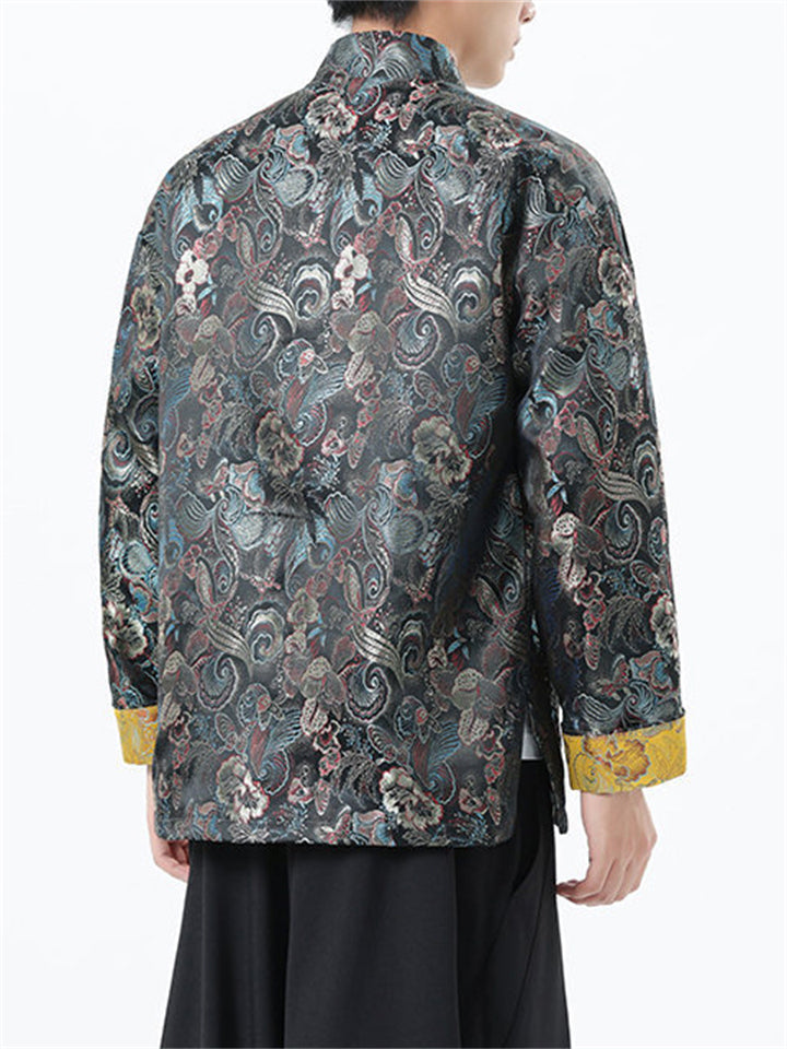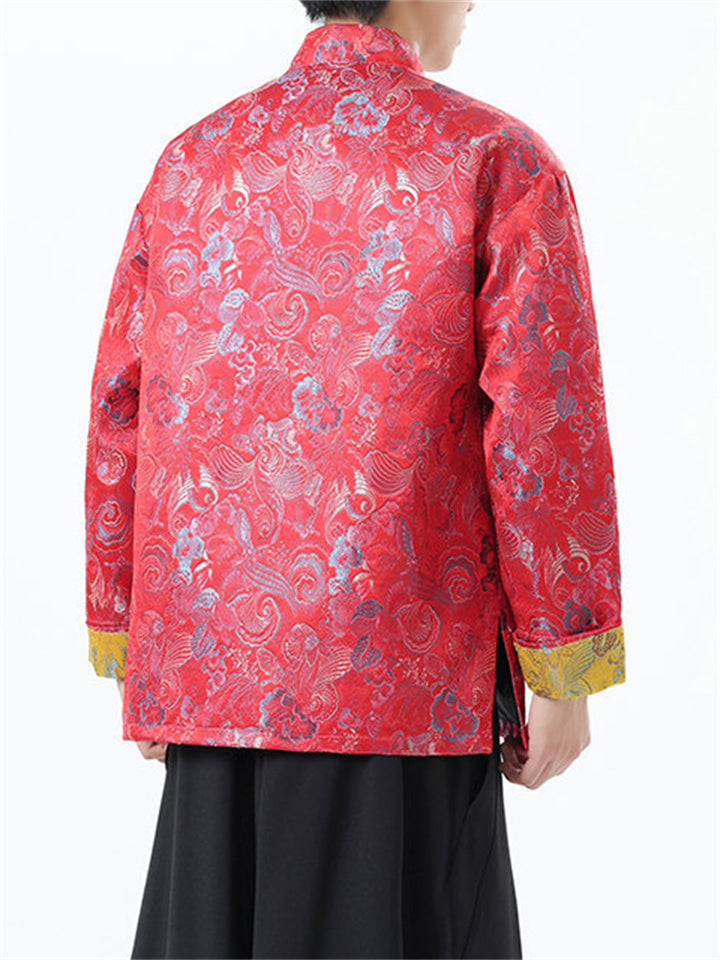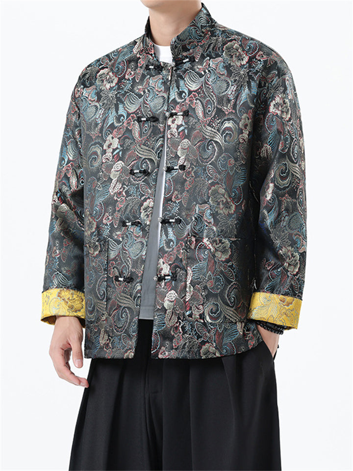 Men's Autumn Peaches Print Stand Collar Tangsuit Cardigan Jackets