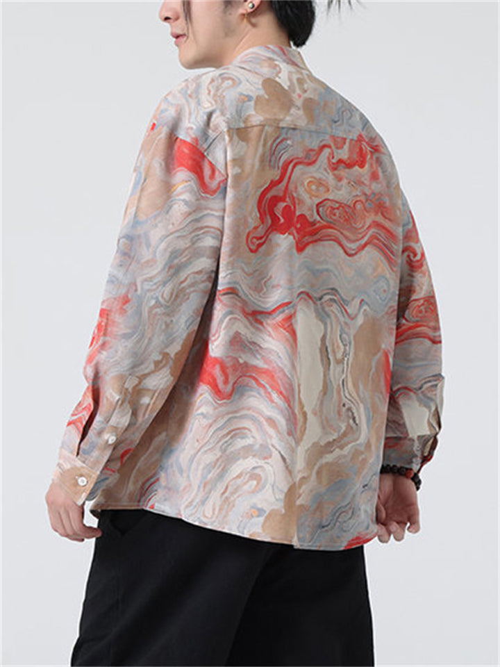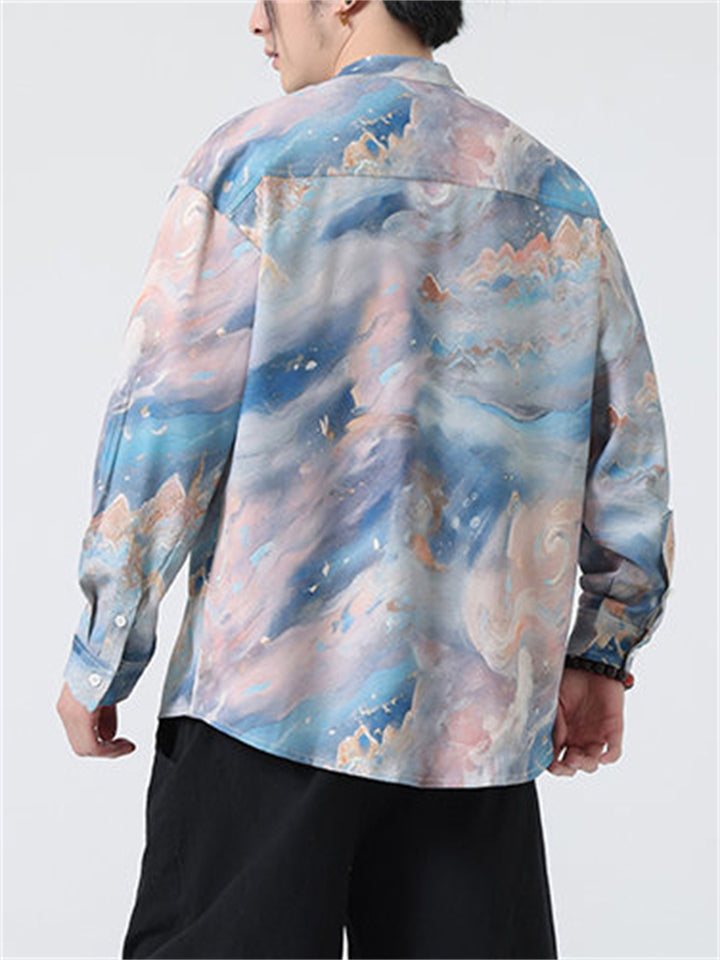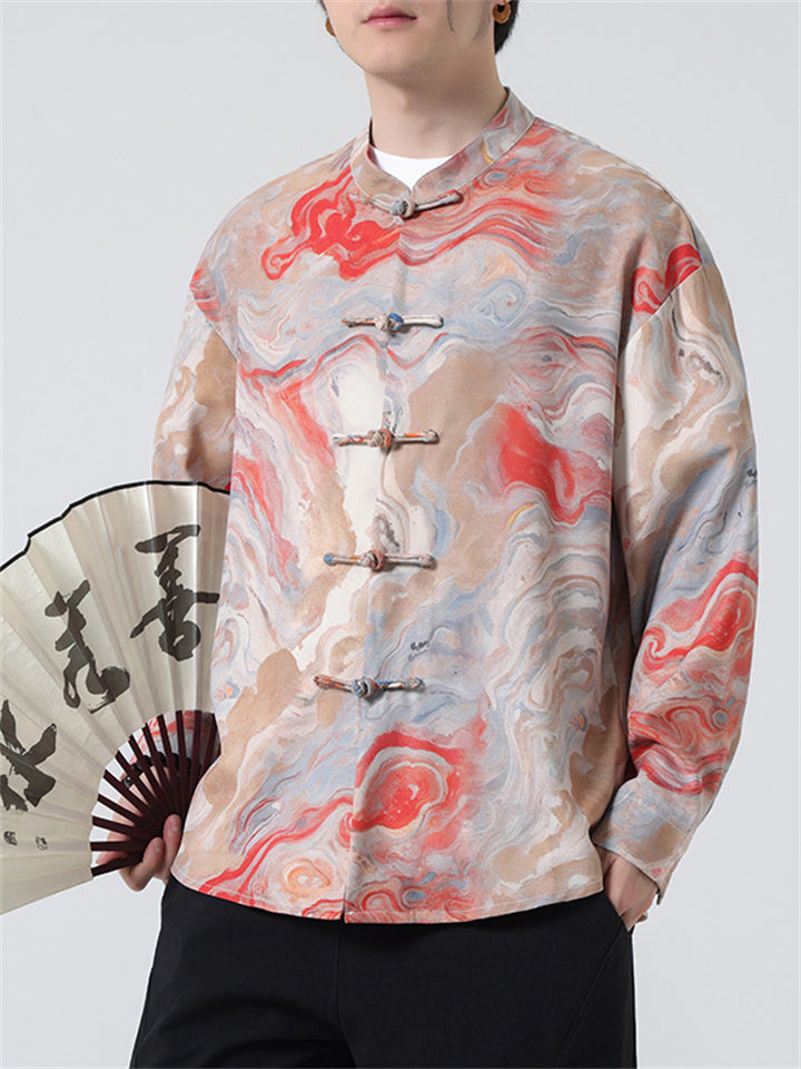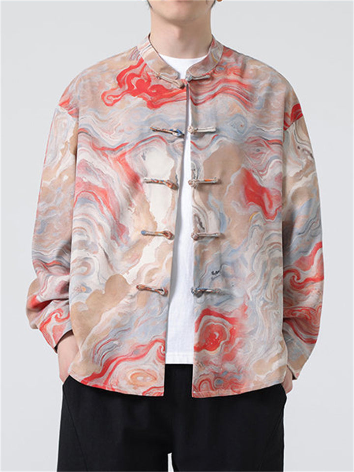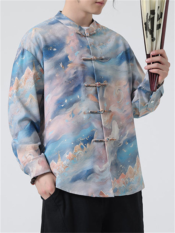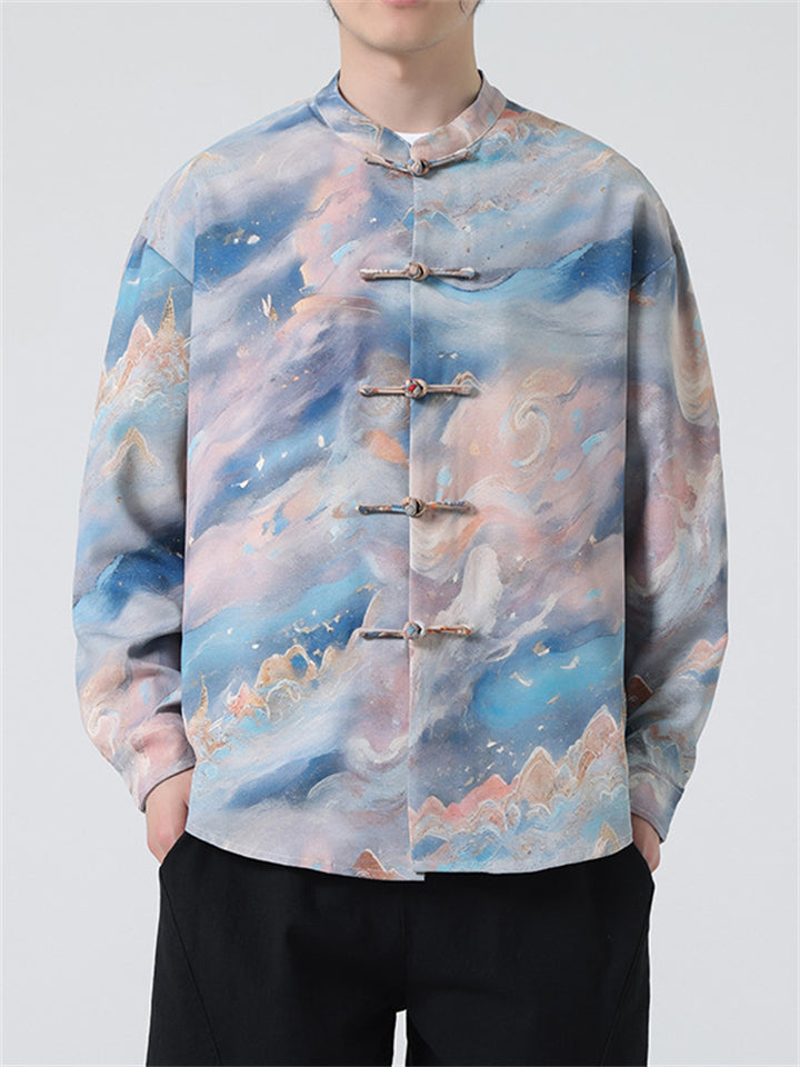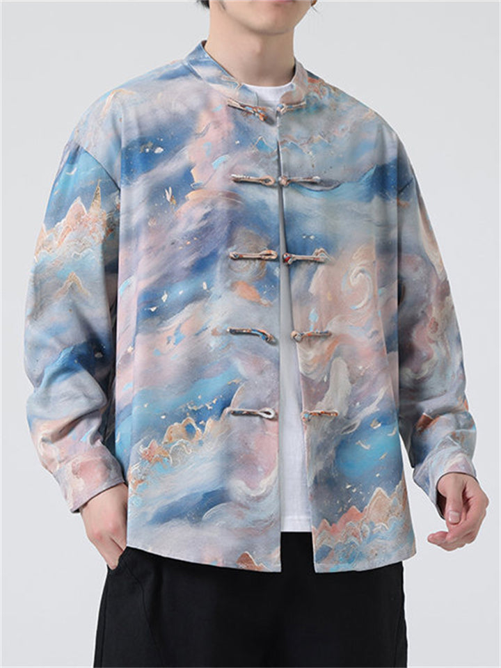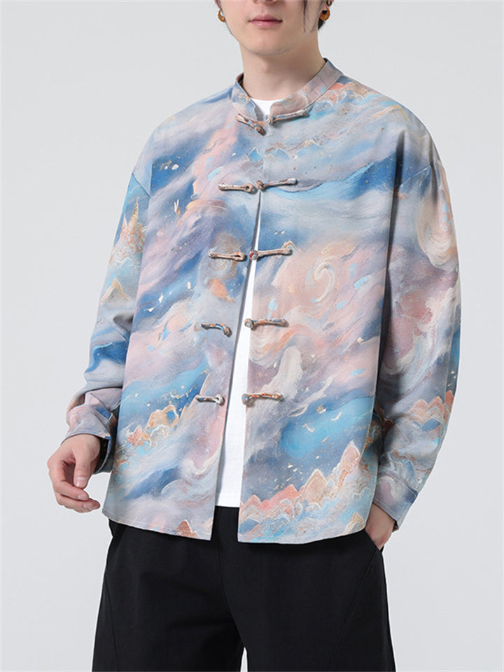 Male Colorful Auspicious Clouds Pattern Long Sleeve Jacket