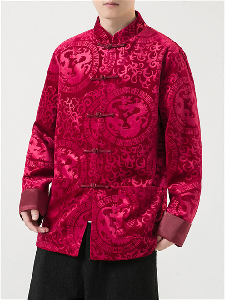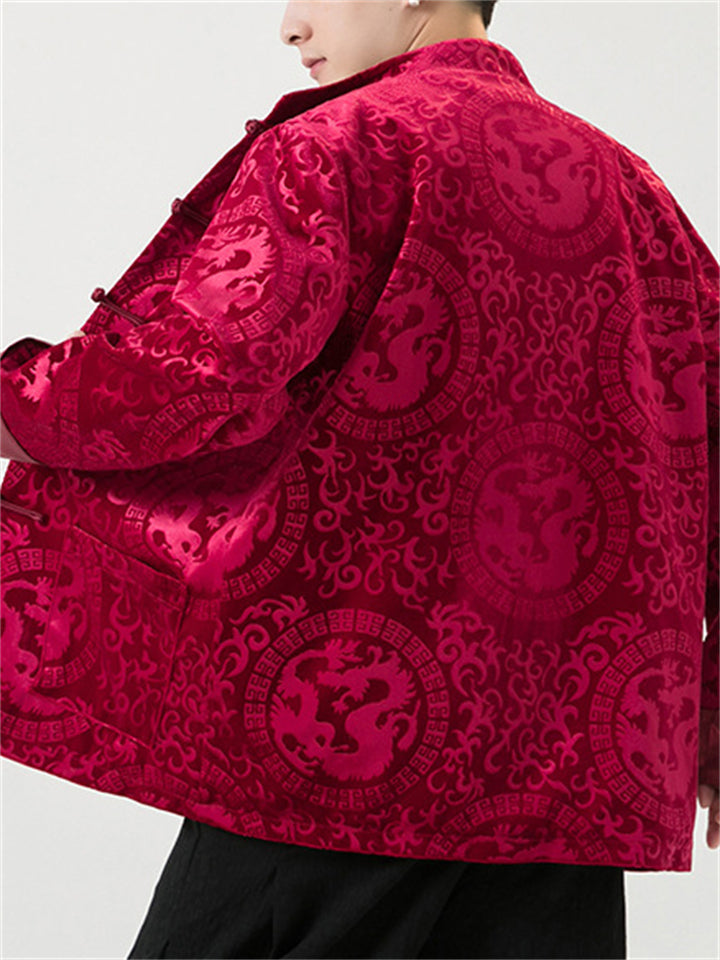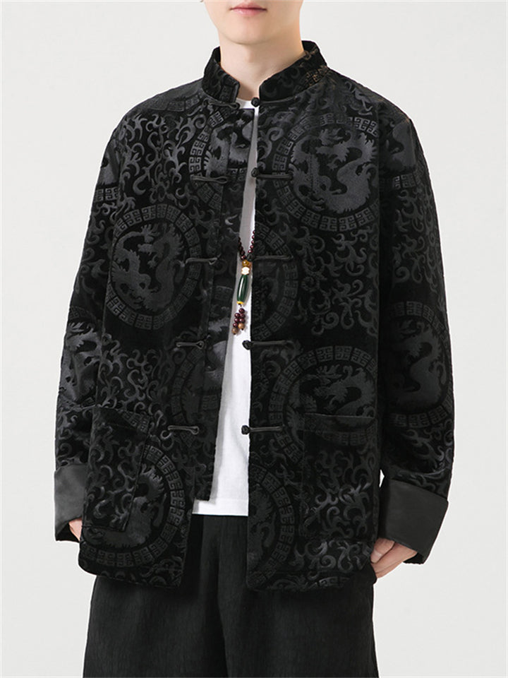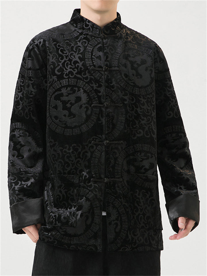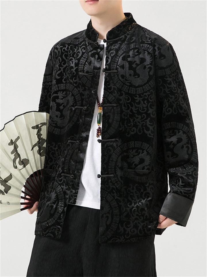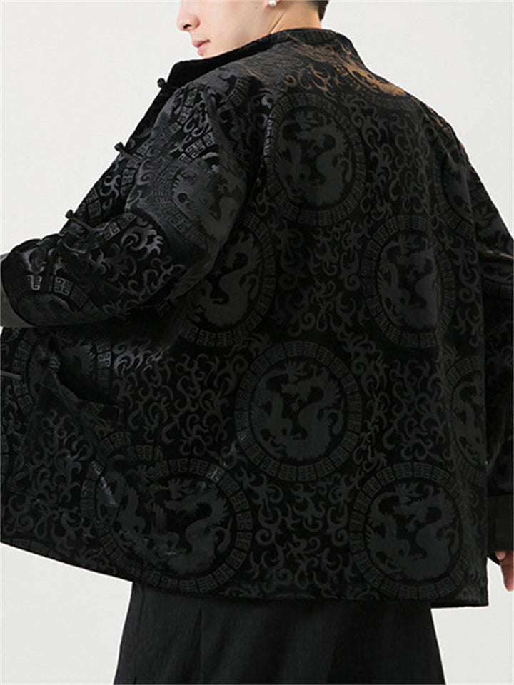 Men's Autumn Cartoon Loong Print Stand Collar Tangsuit Cardigan Jackets