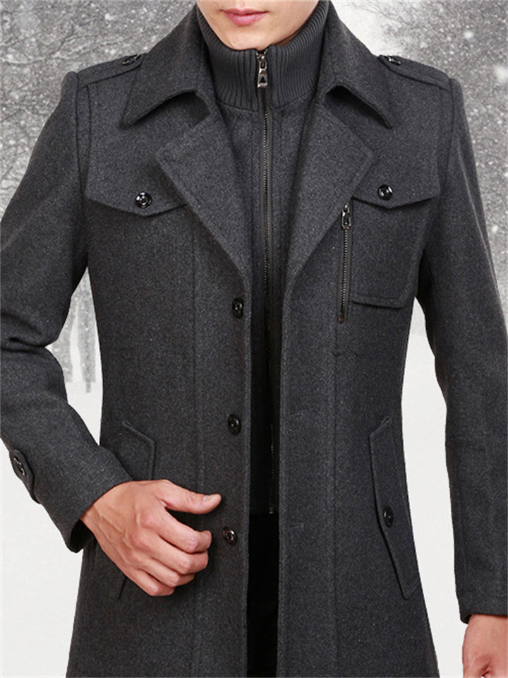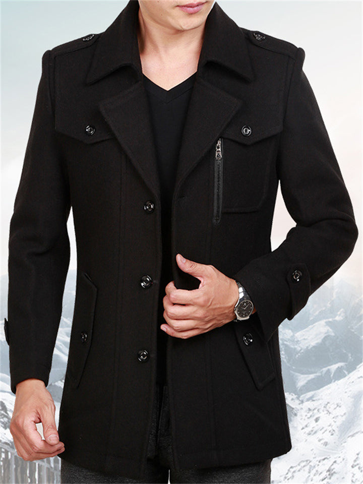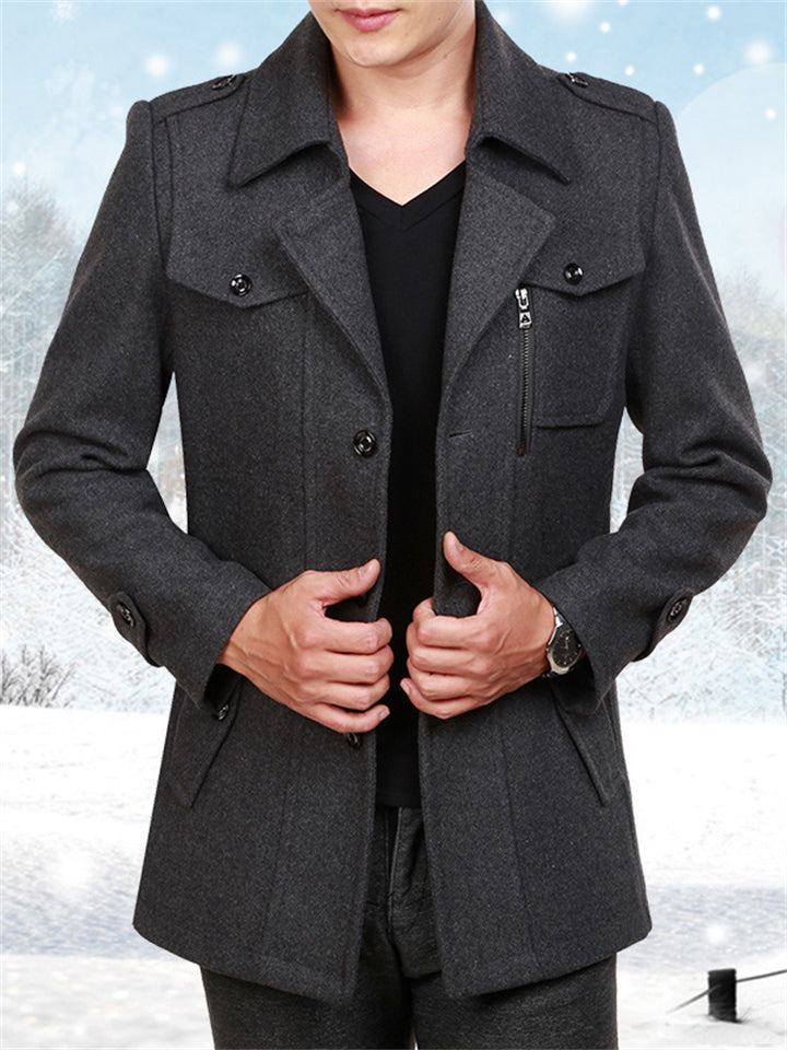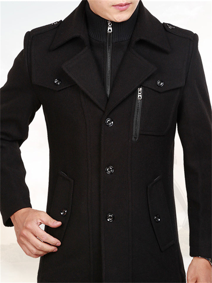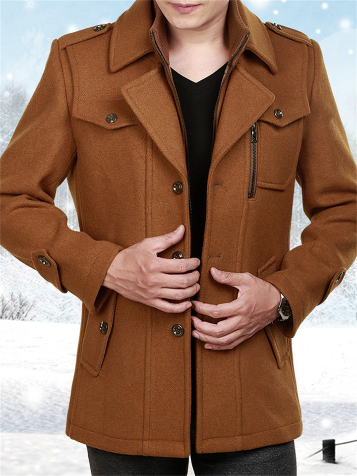 Male Stylish Wool Blend Removable Inner Liner Jacket