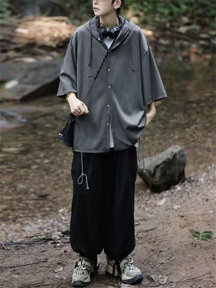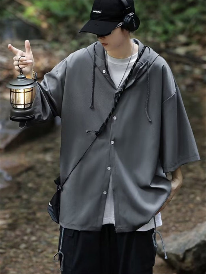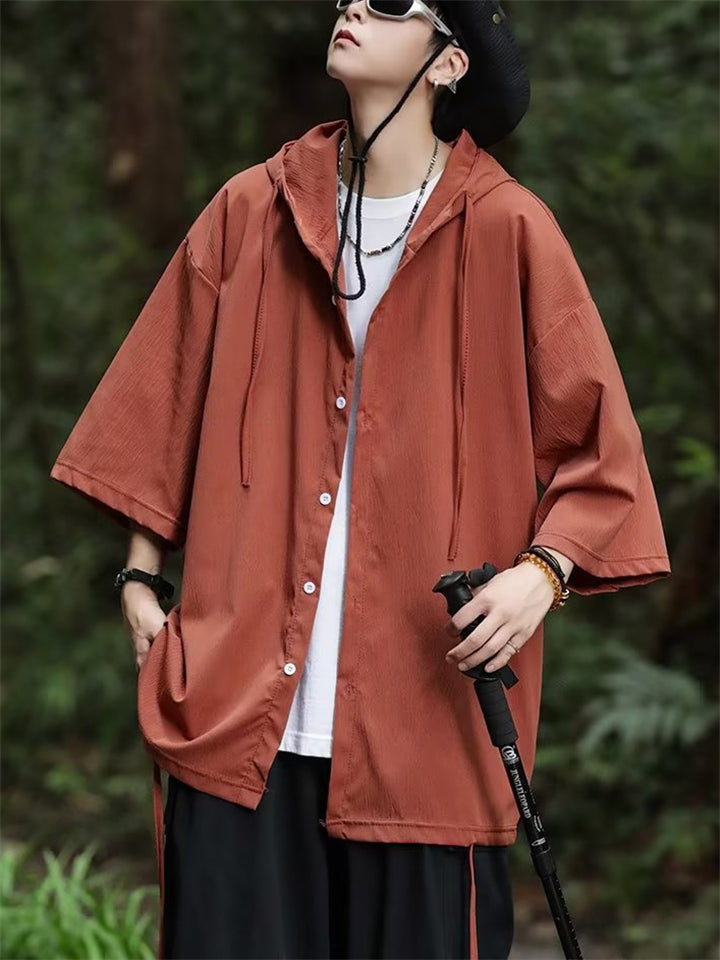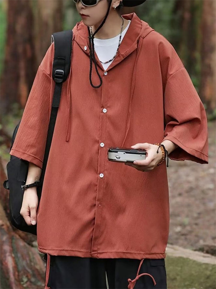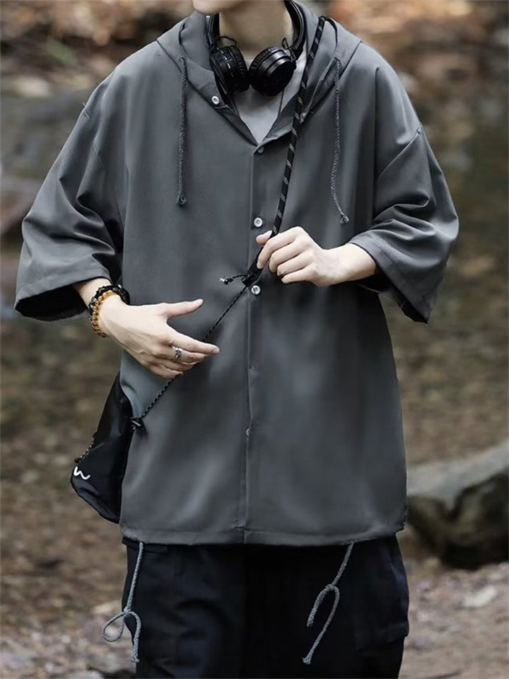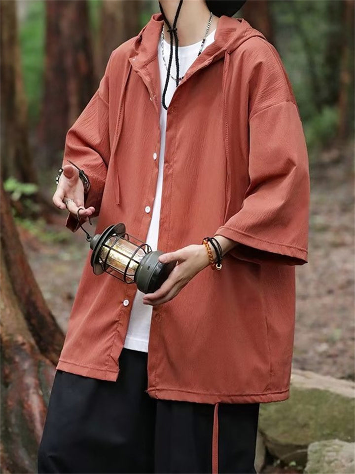 Men's 3/4 Sleeve Fake Two-piece Ice Silk Jacket