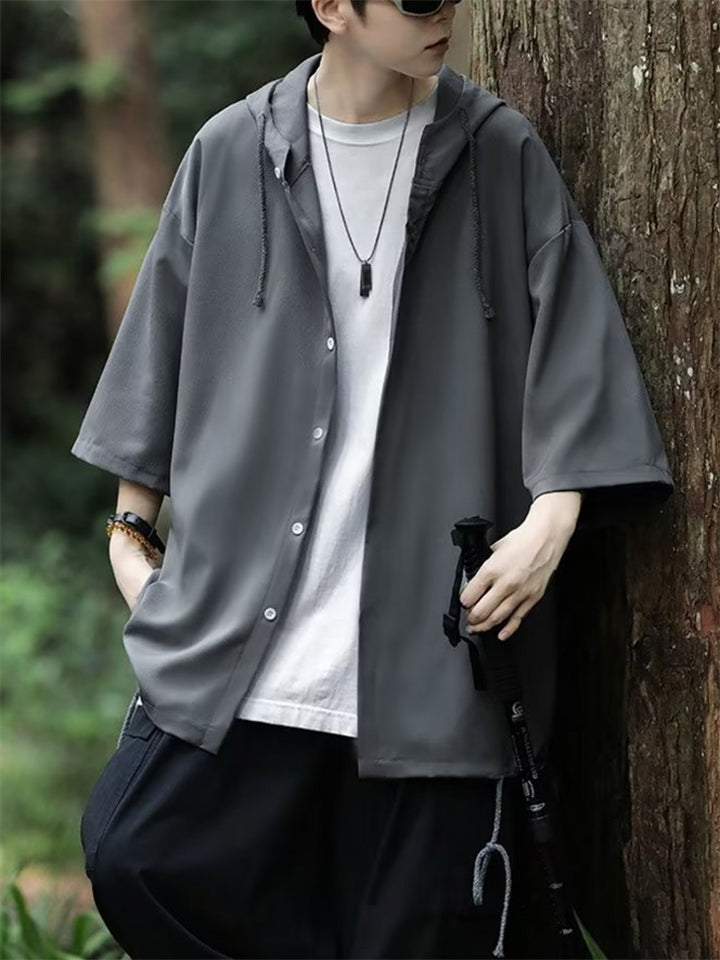 Men's Autumn Solid Color Concealed Placket Cardigan Jackets