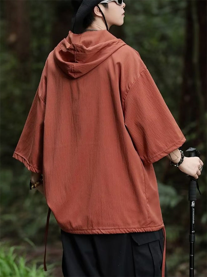 Men's Autumn Solid Color Corduroy Zen Style Lace Up Cardigan Jackets