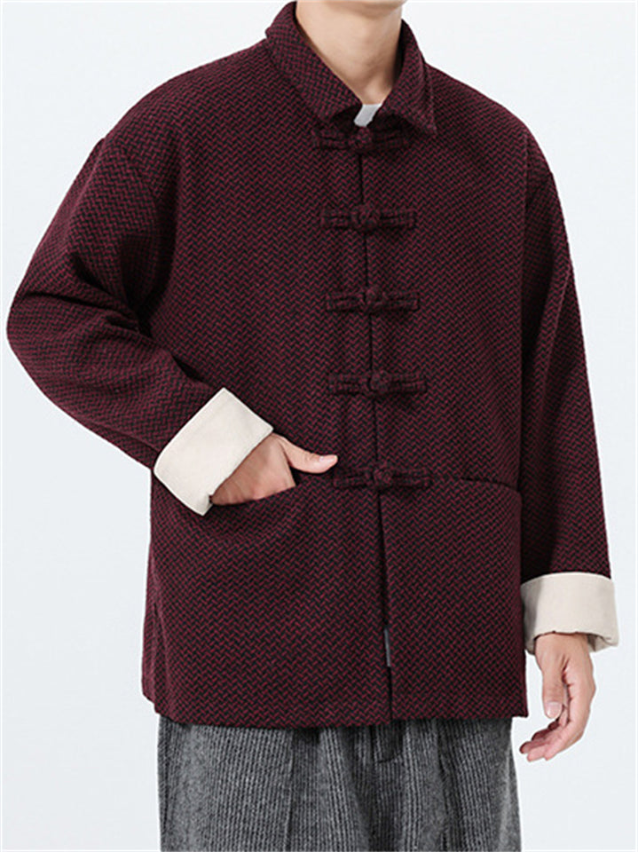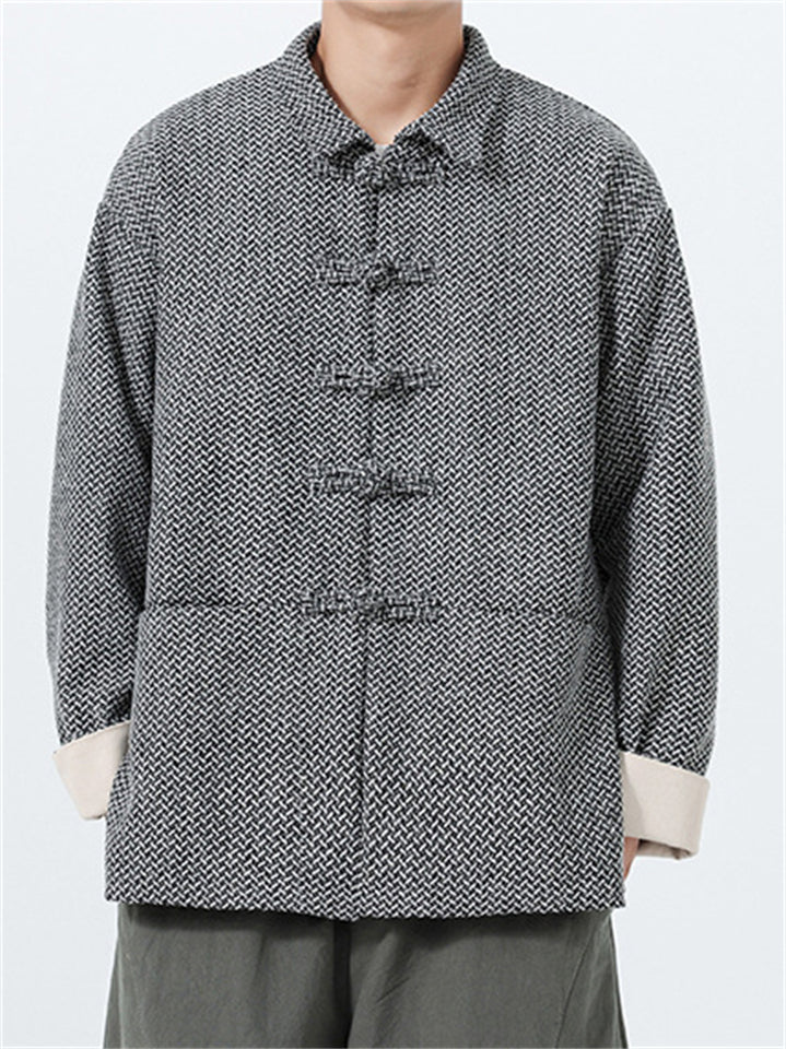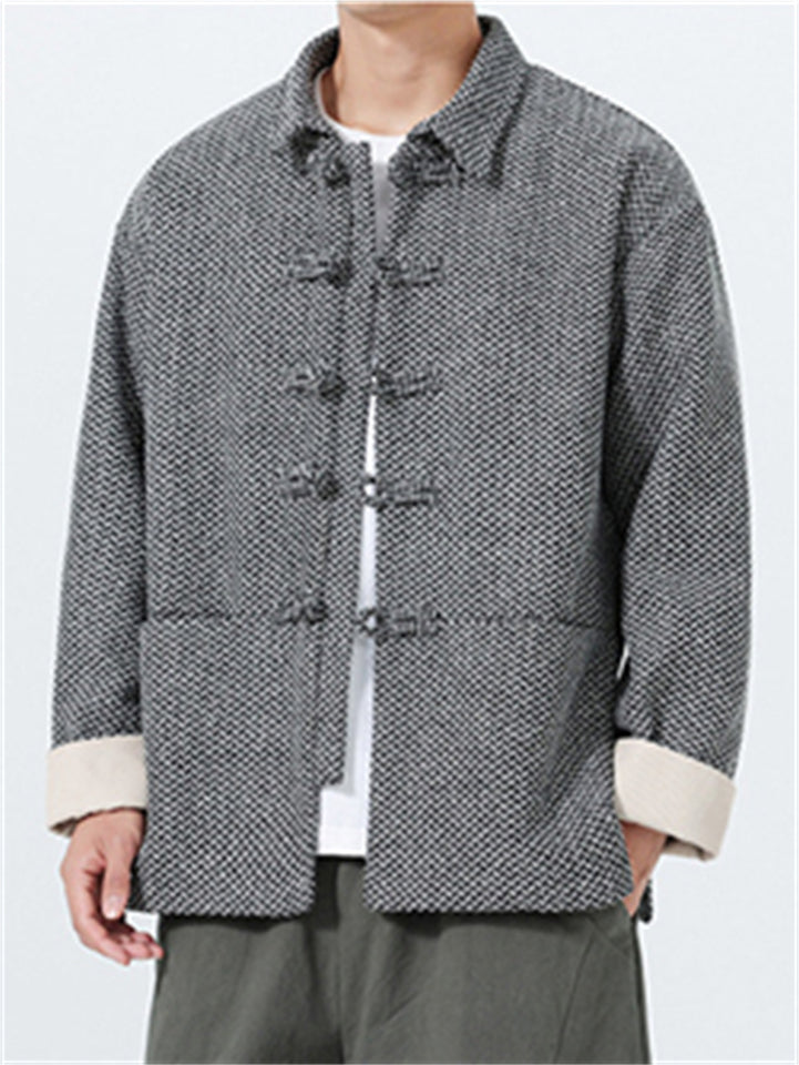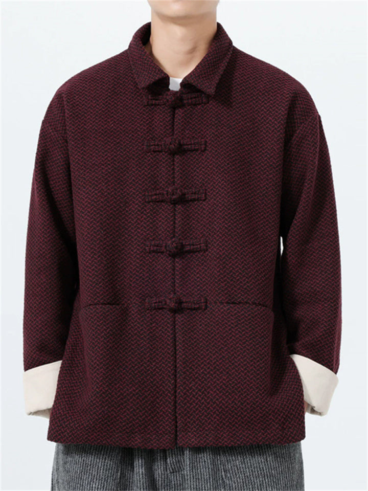 Men's Autumn Chinese Style Solid Color Geometric Texture Tangsuit Jackets