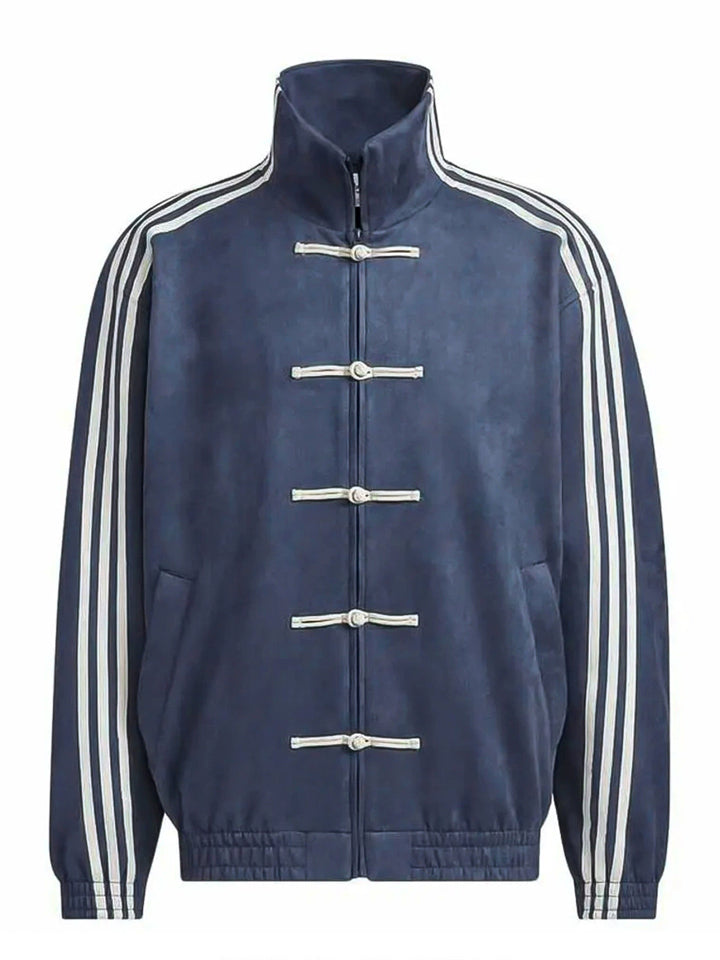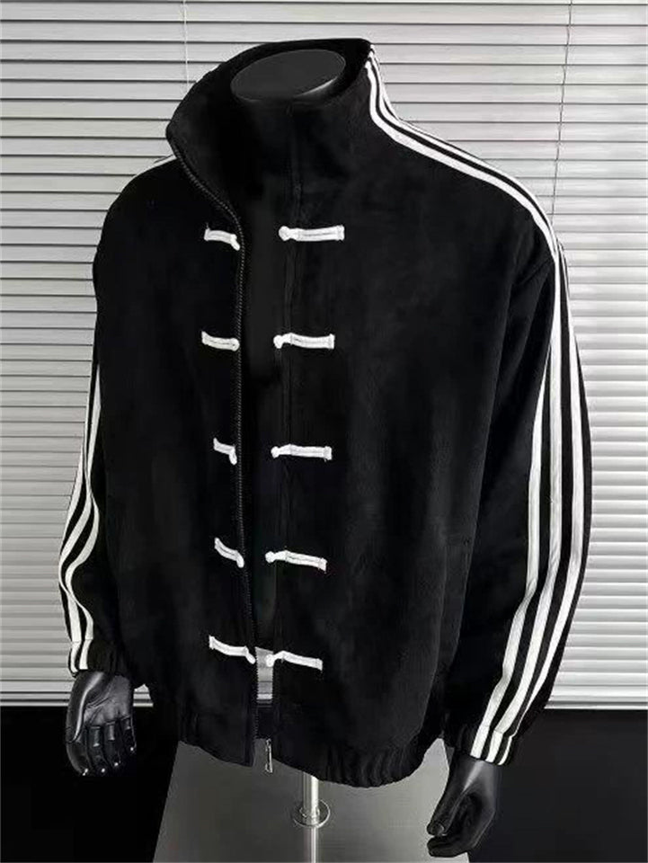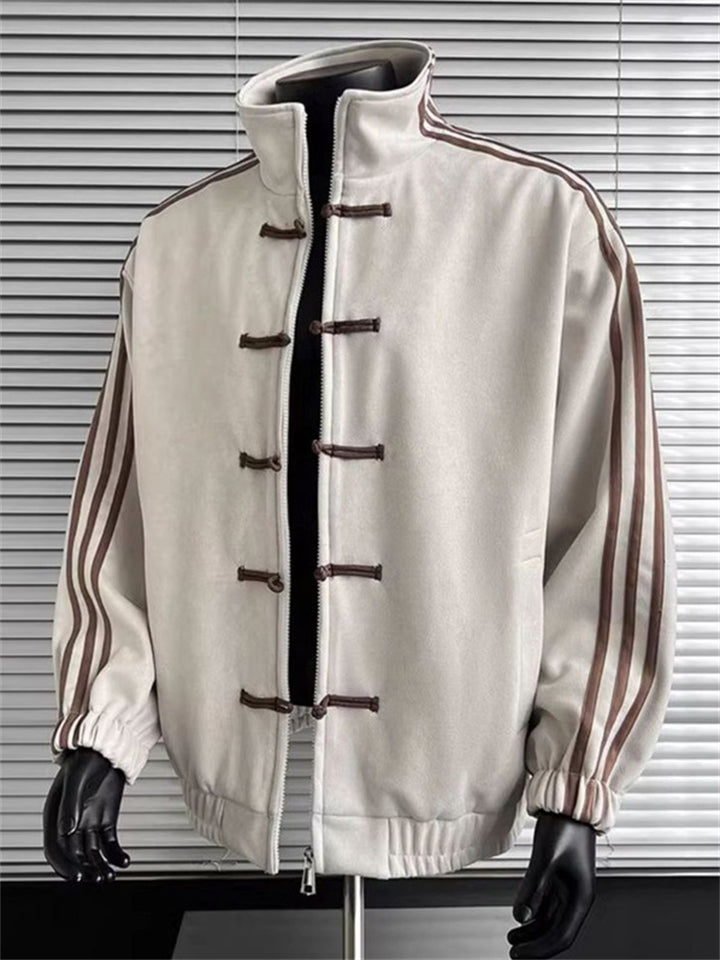Men's Autumn Chinese Style Striped Stand Collar Jacket with Frog Buttons