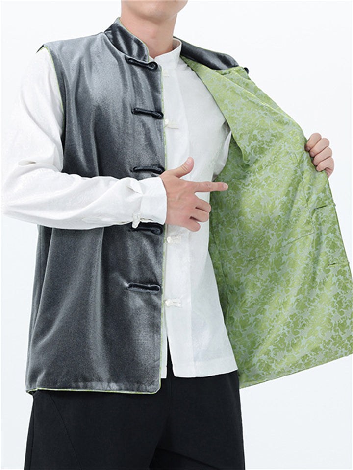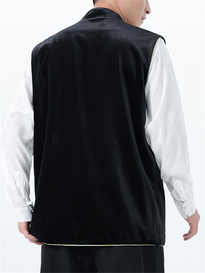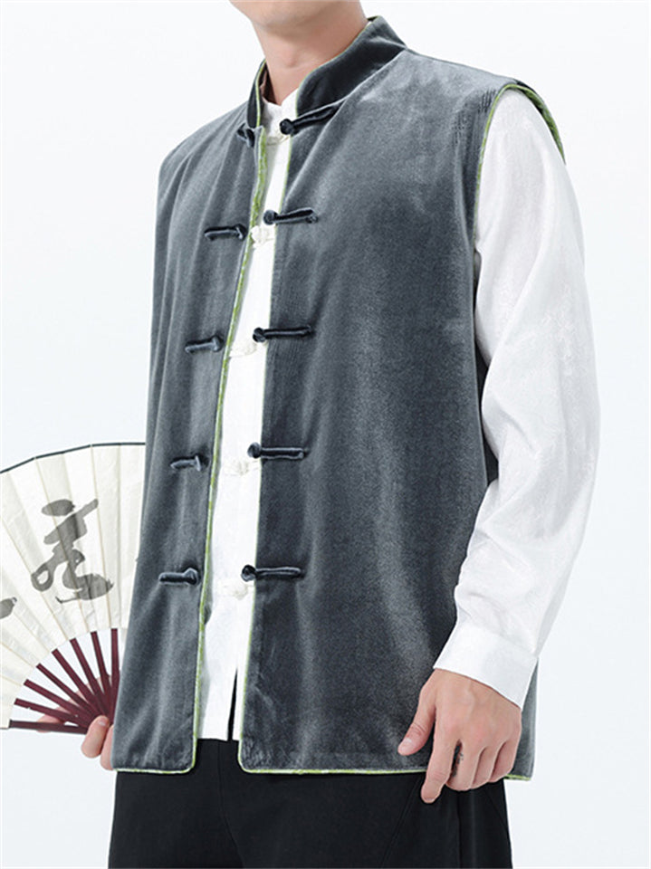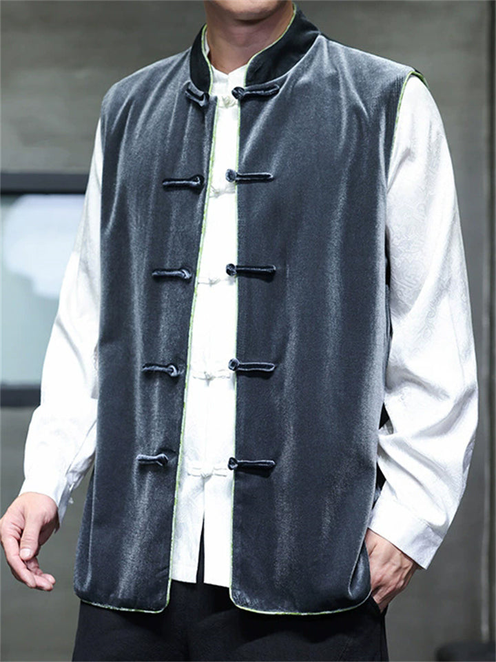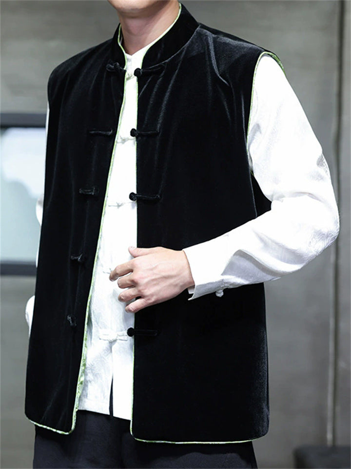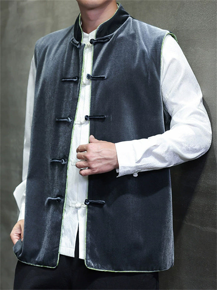 Men's Autumn Velvet Contrast Trim Sleeveless Frog Button Vest Jackets