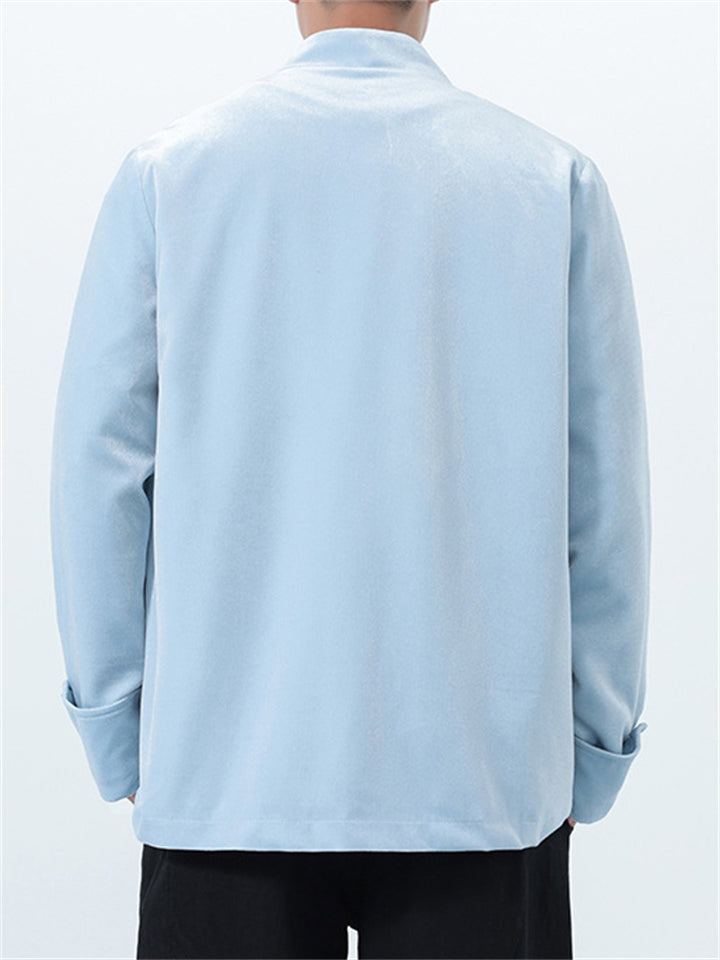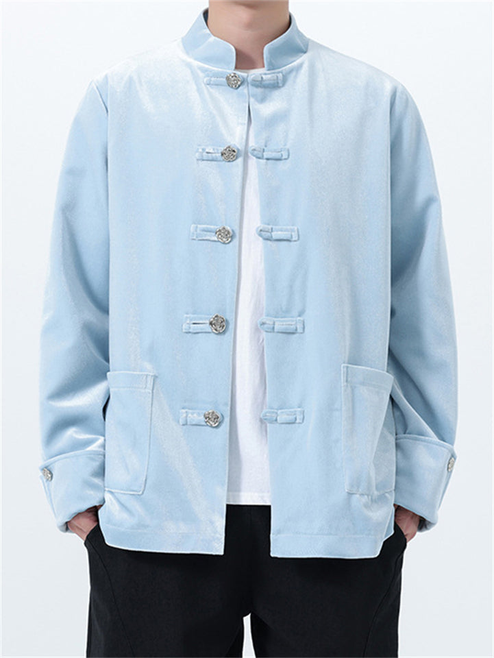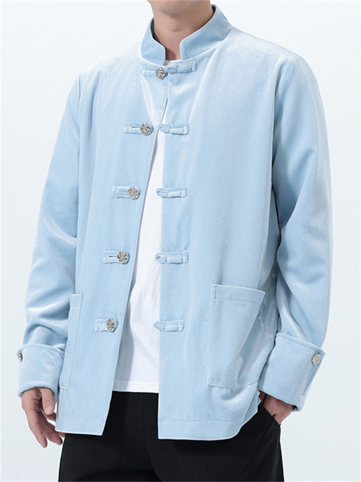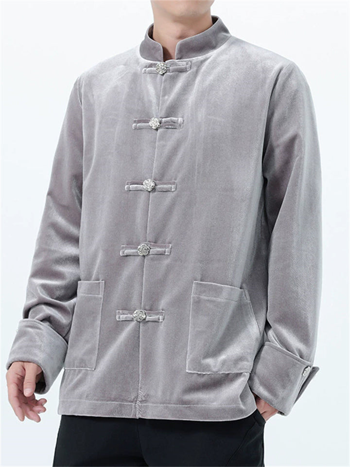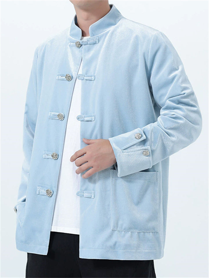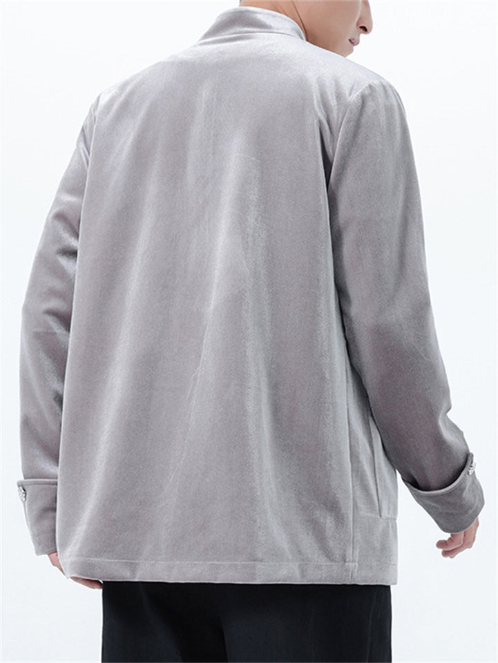 Men's Autumn Velvet Solid Color Stand Collar TangSuit Jackets