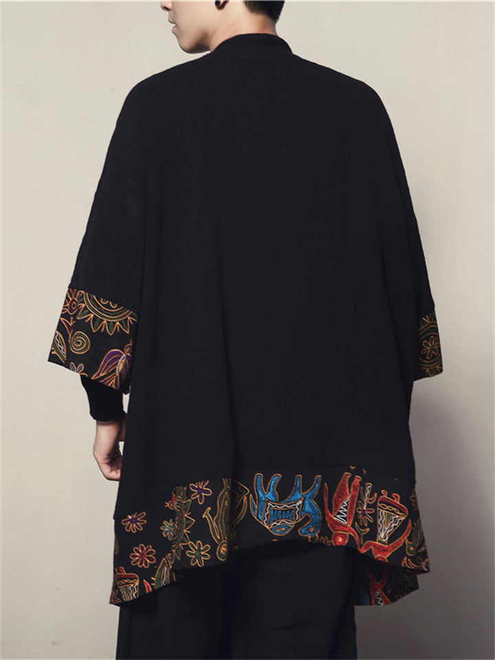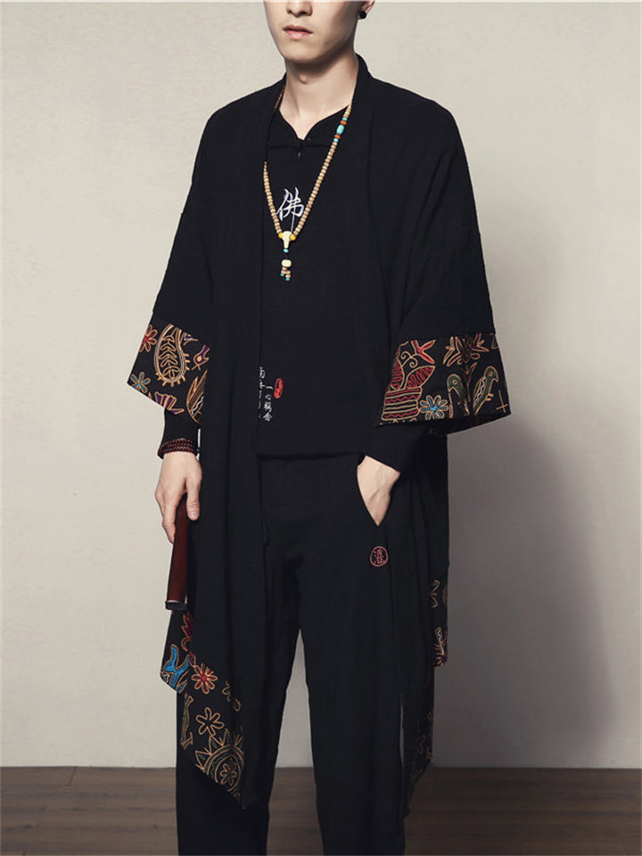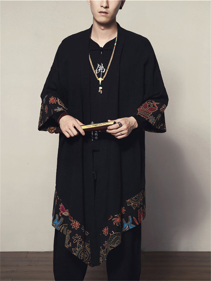 Men's Autumn Chinese Zen Style Black Long Sleeve Cardigan Jackets