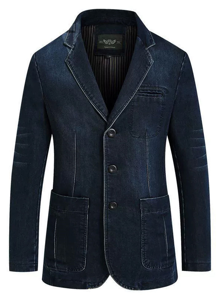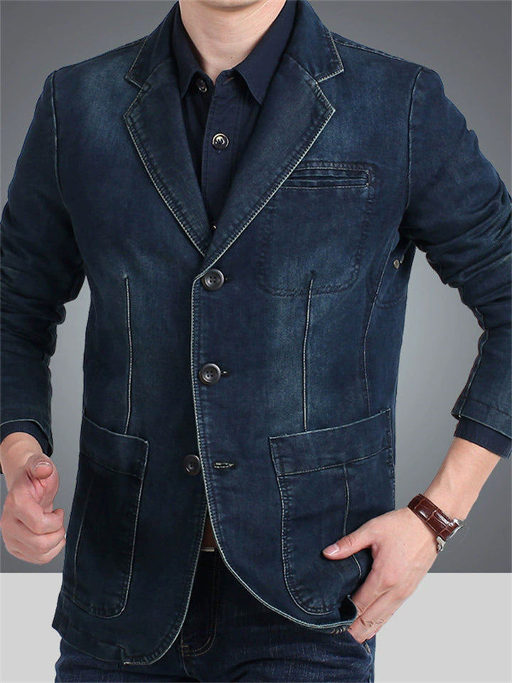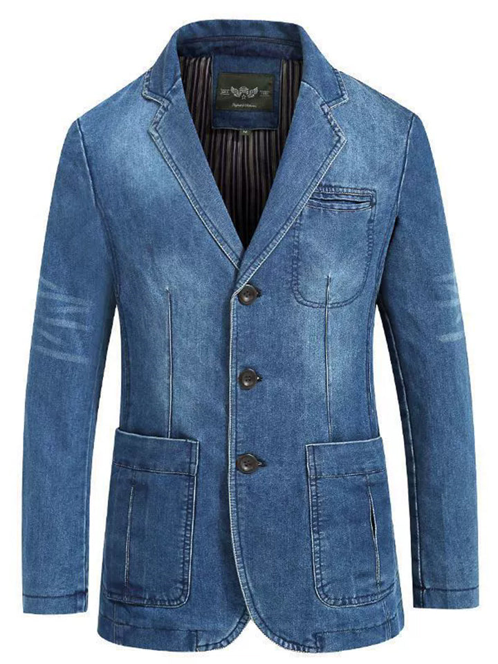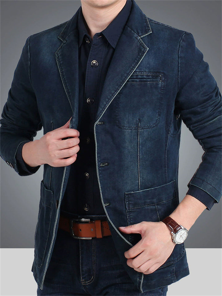 Men's Casual Single Breasted Lapel Suit Collar Denim Jackets
