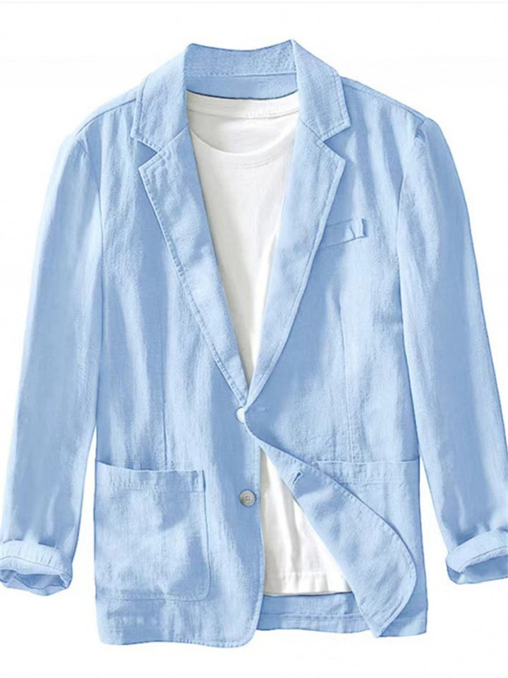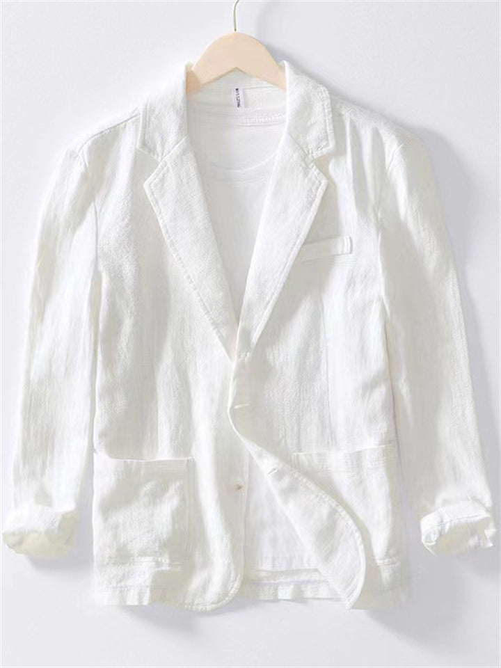 Men's Casual Solid Color Cotton Suit Collar Jacket
