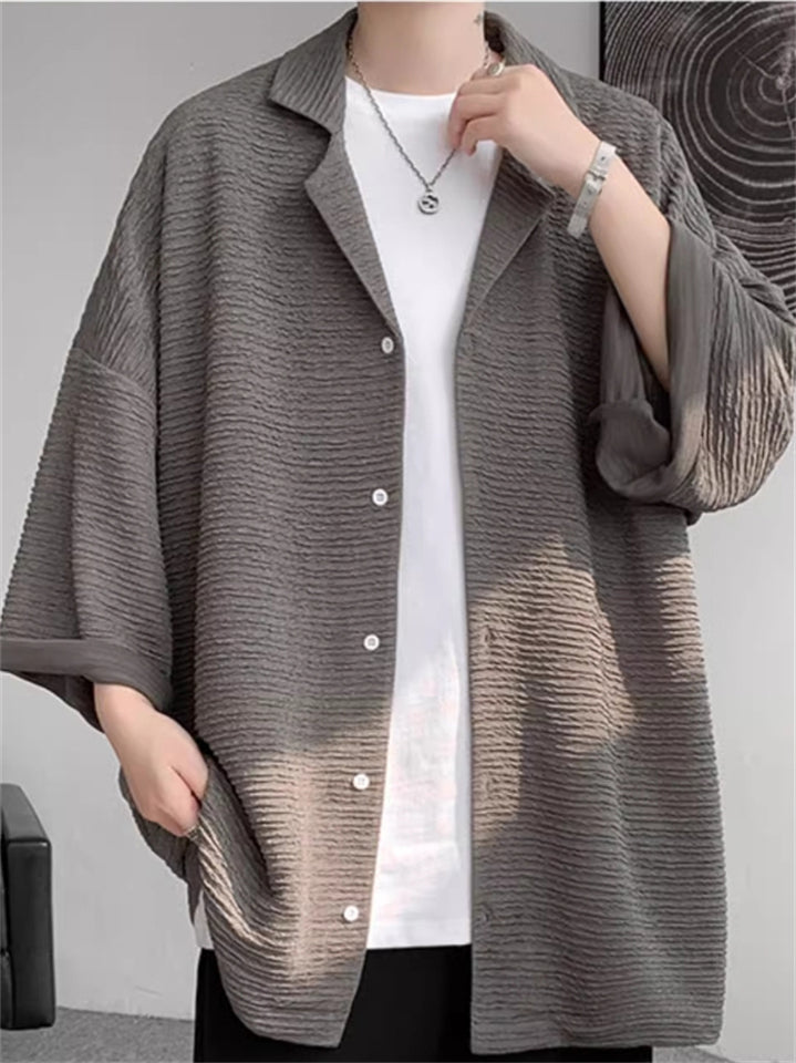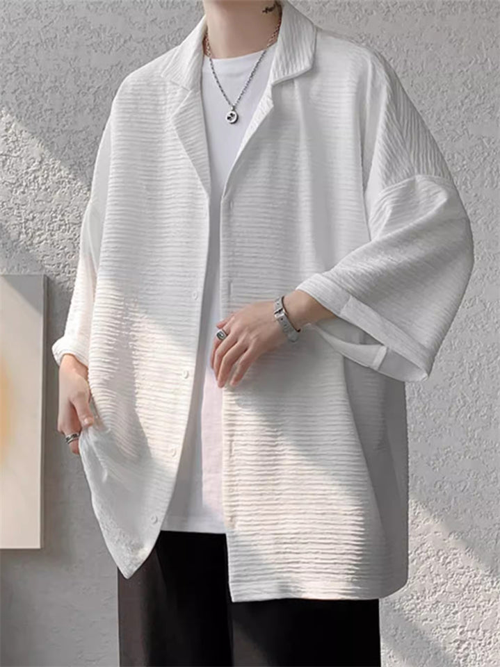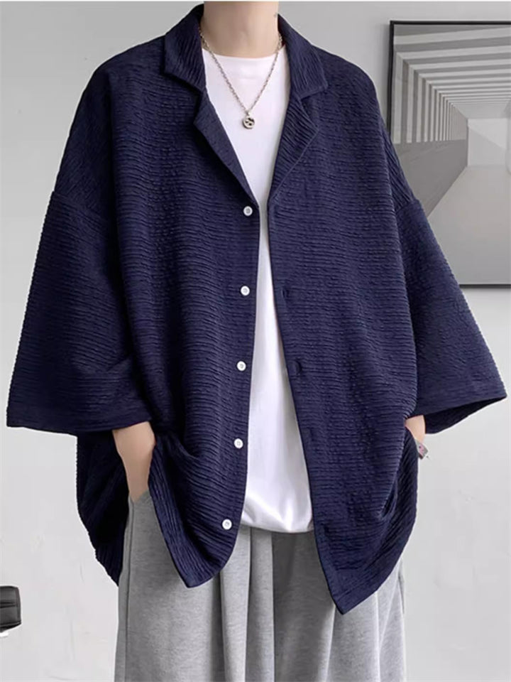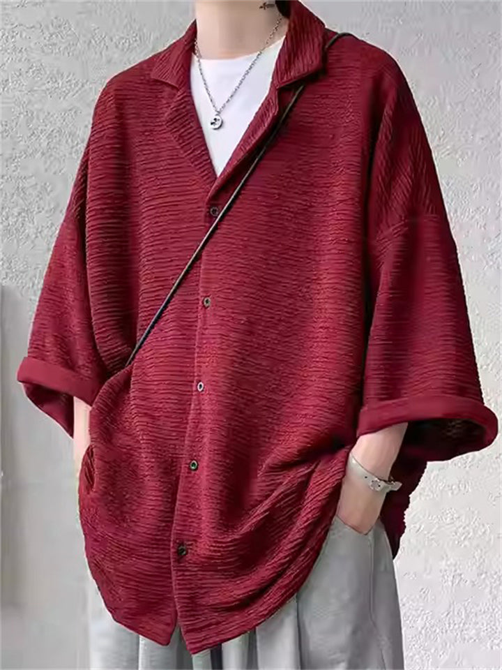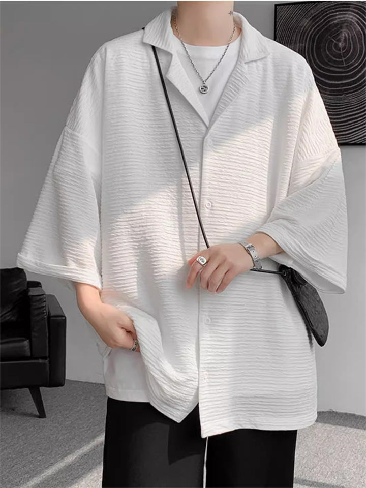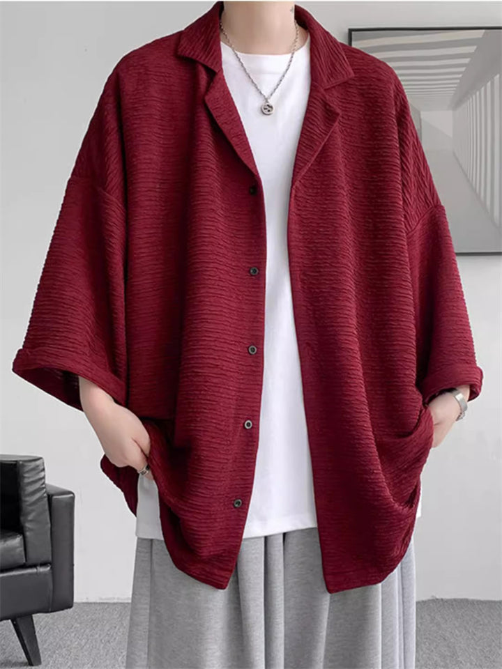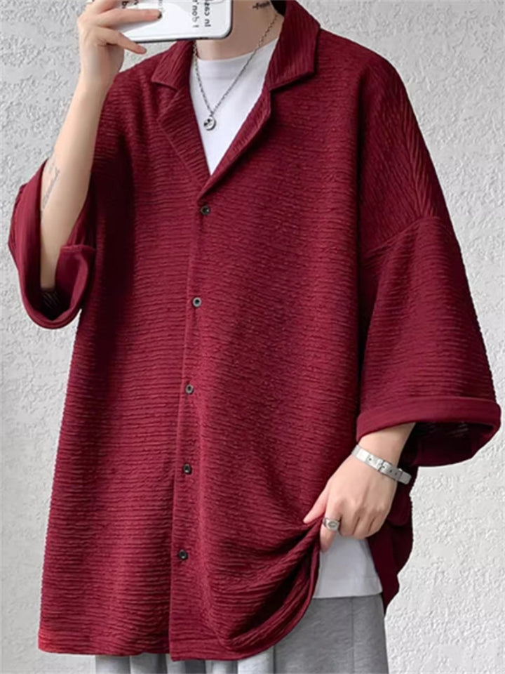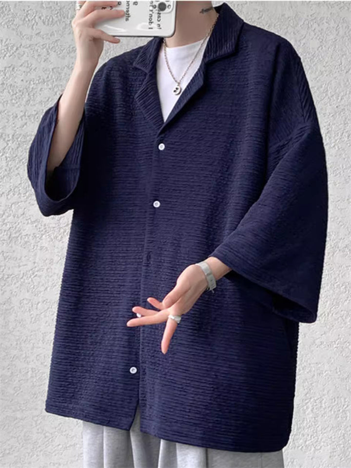 Men's Casual Solid Color Textured 3/4 Sleeve Cardigan Shirt