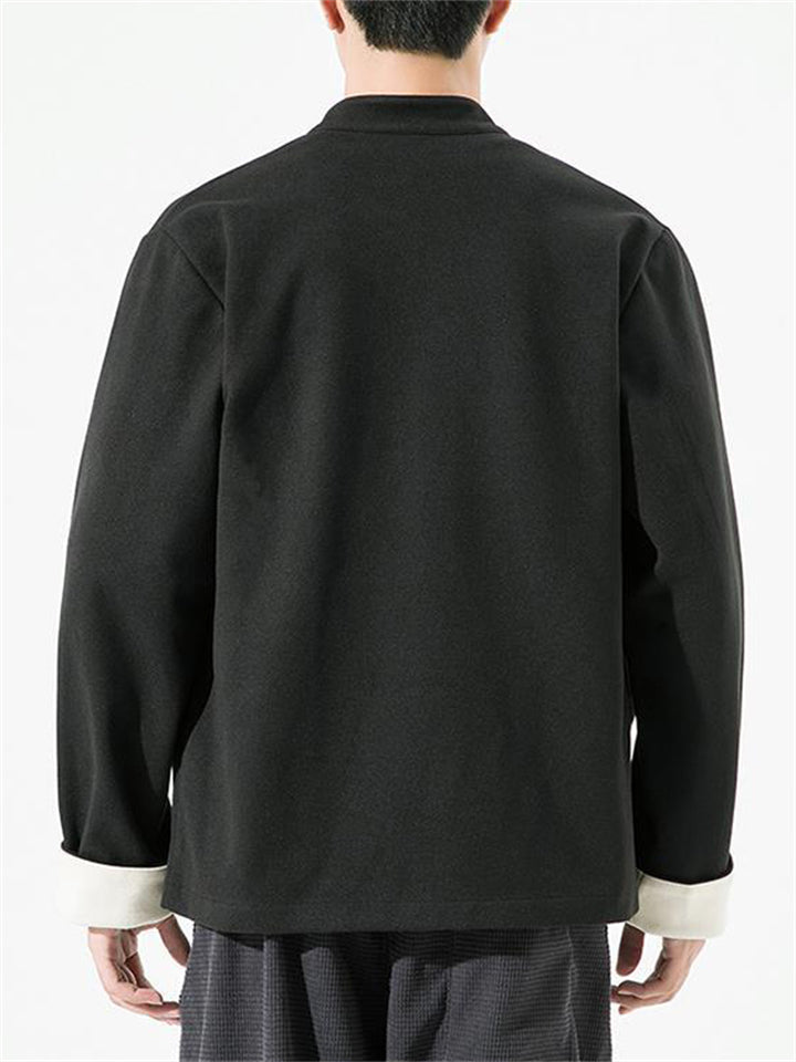 Men's Autumn Chinese Style Corduroy Contrast Color Tangsuit Jackets