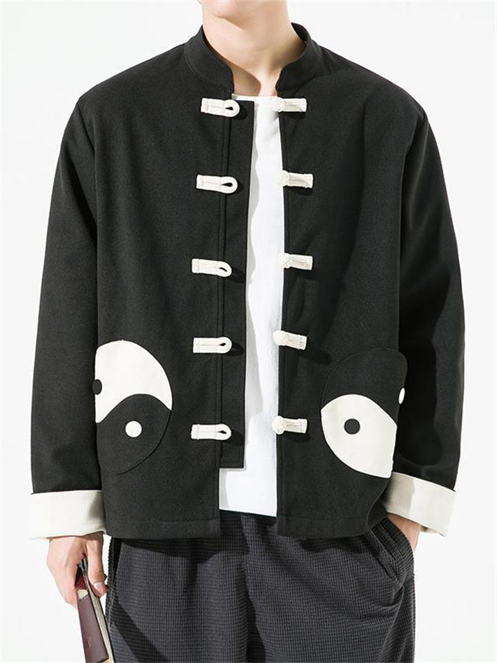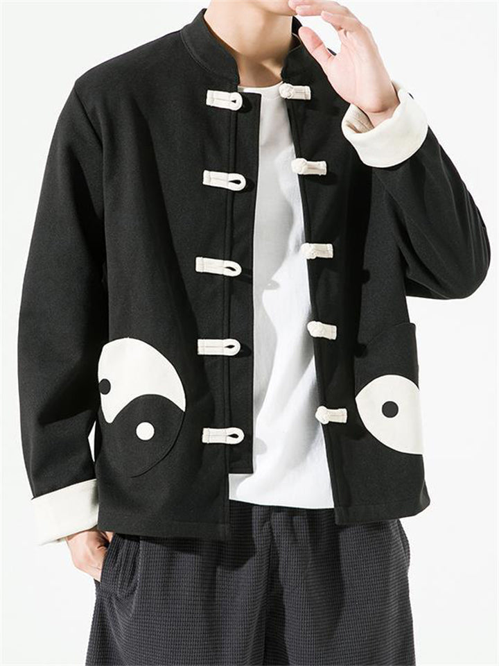 Men's Chinese Style Black White Tai Chi Kungfu Tang Suit Jacket