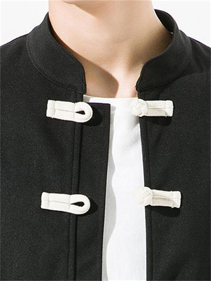 Men's Autumn Chinese Zen Style Black Long Sleeve Cardigan Jackets