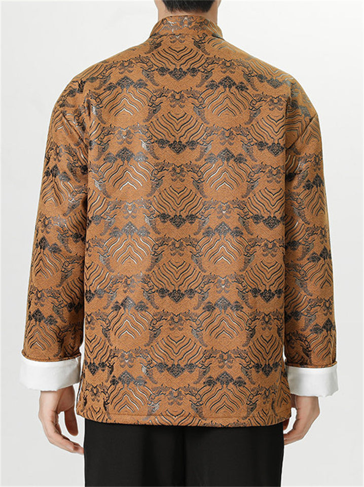 Men's Chinese Style Suede Stand Collar TangSuit Jacket with Loong Jacquard