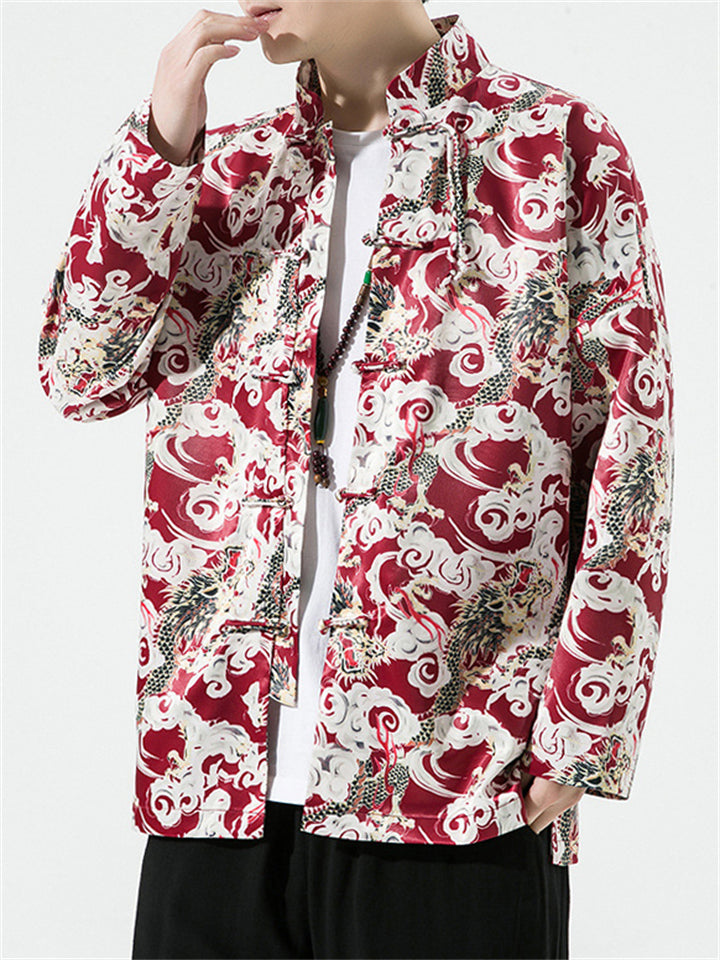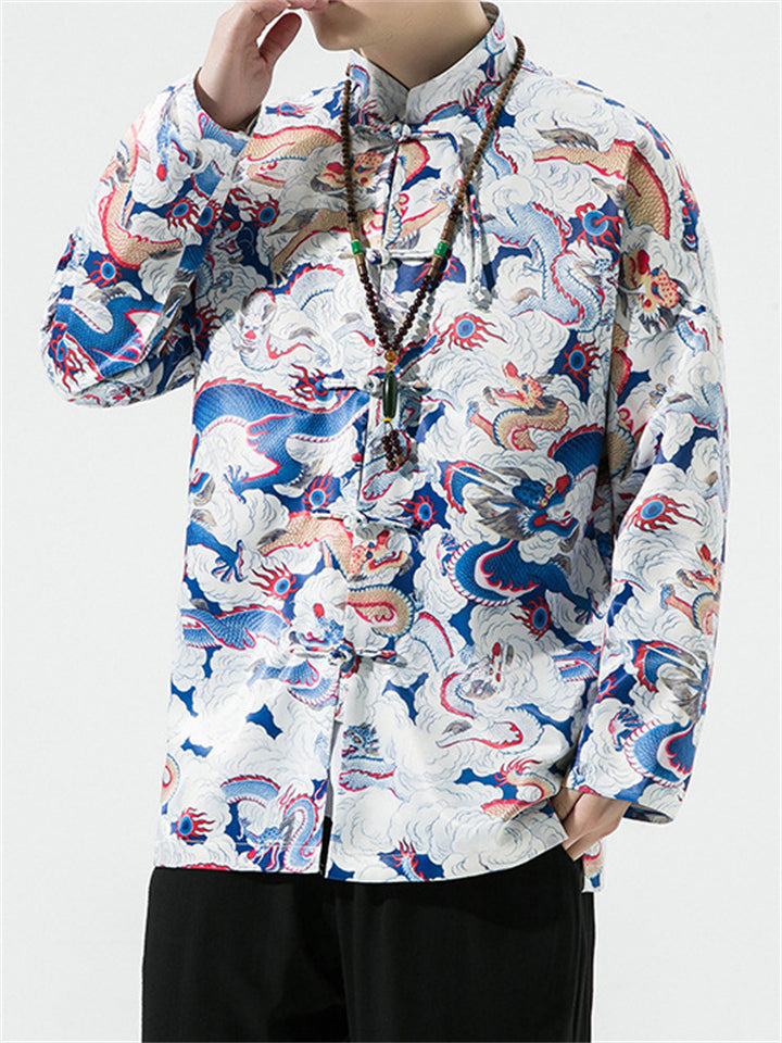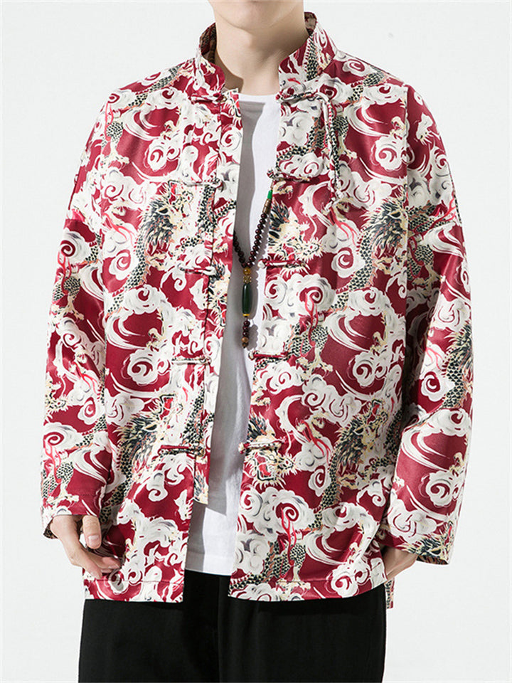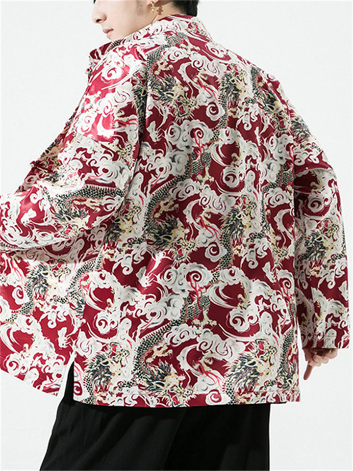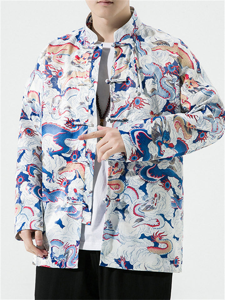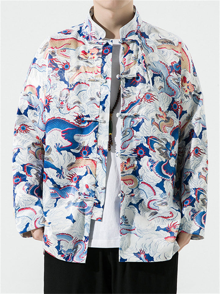 Men's Chinese Style Dragon All-Over Print Autumn Jacket