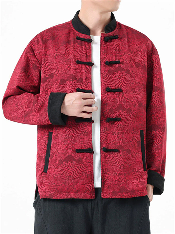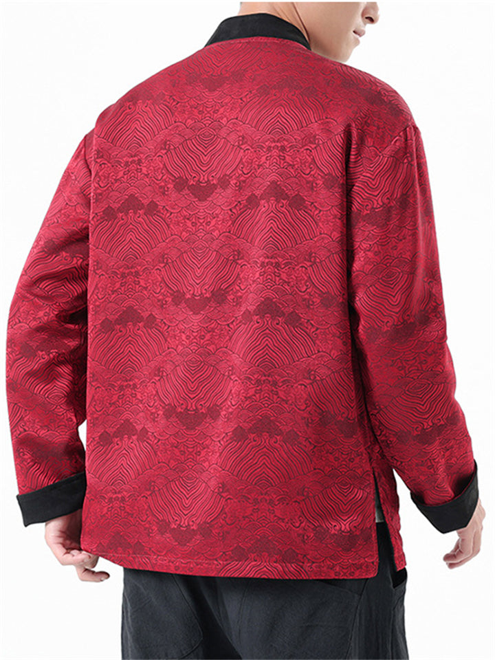 Men's Chinese Style Printed Frog Button Reversible TangSuit Jackets