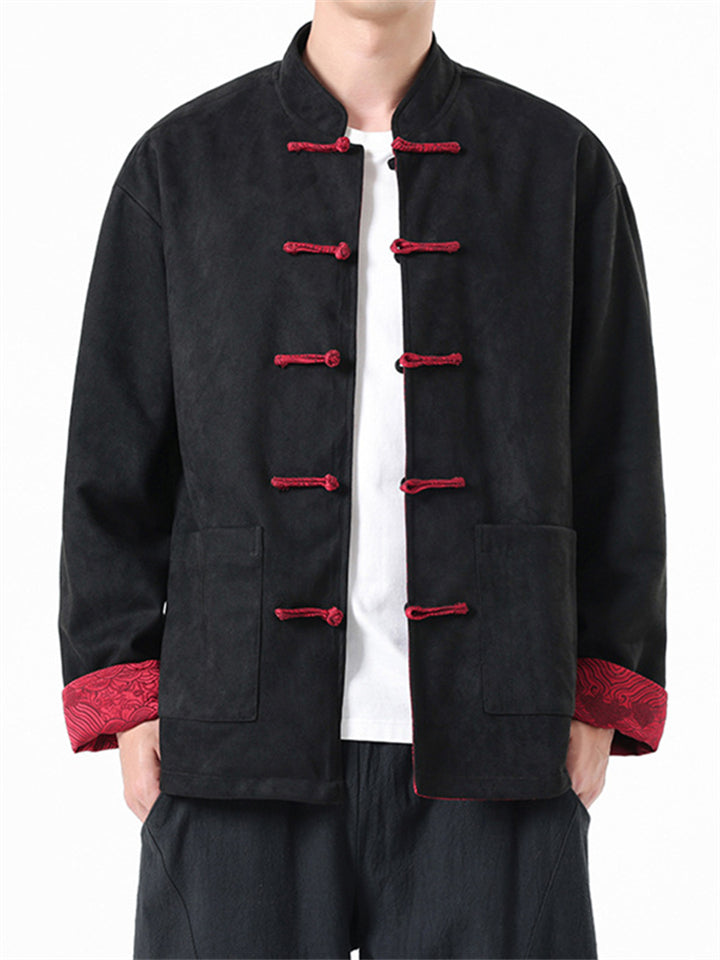 Men's Autumn Chinese Style Corduroy Contrast Color Tangsuit Jackets