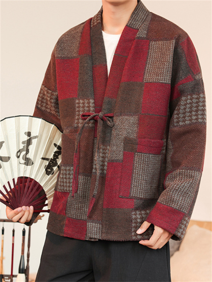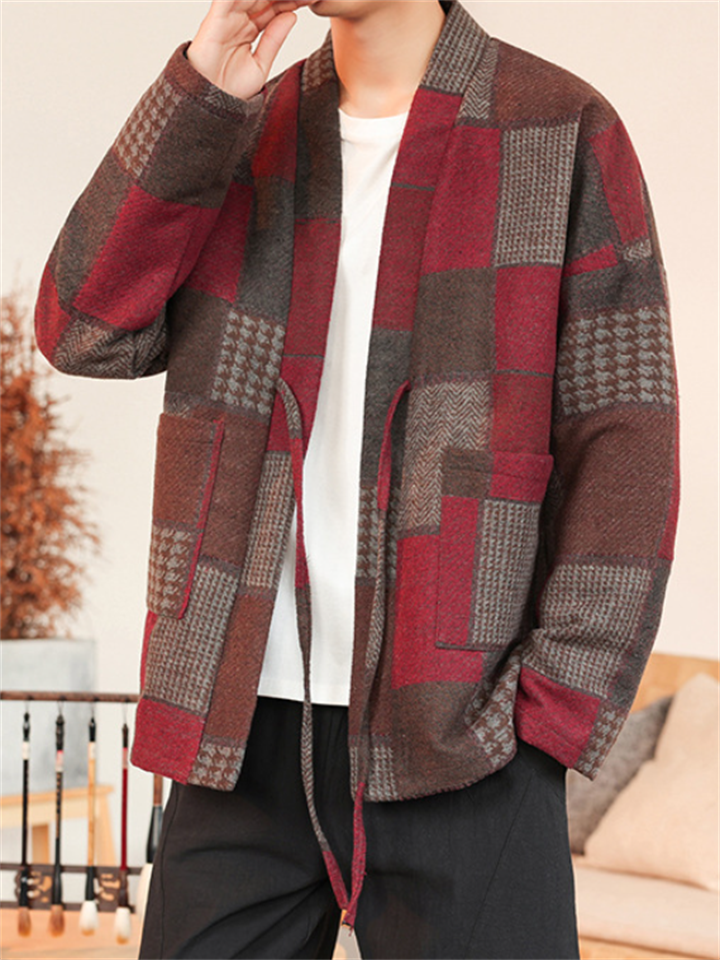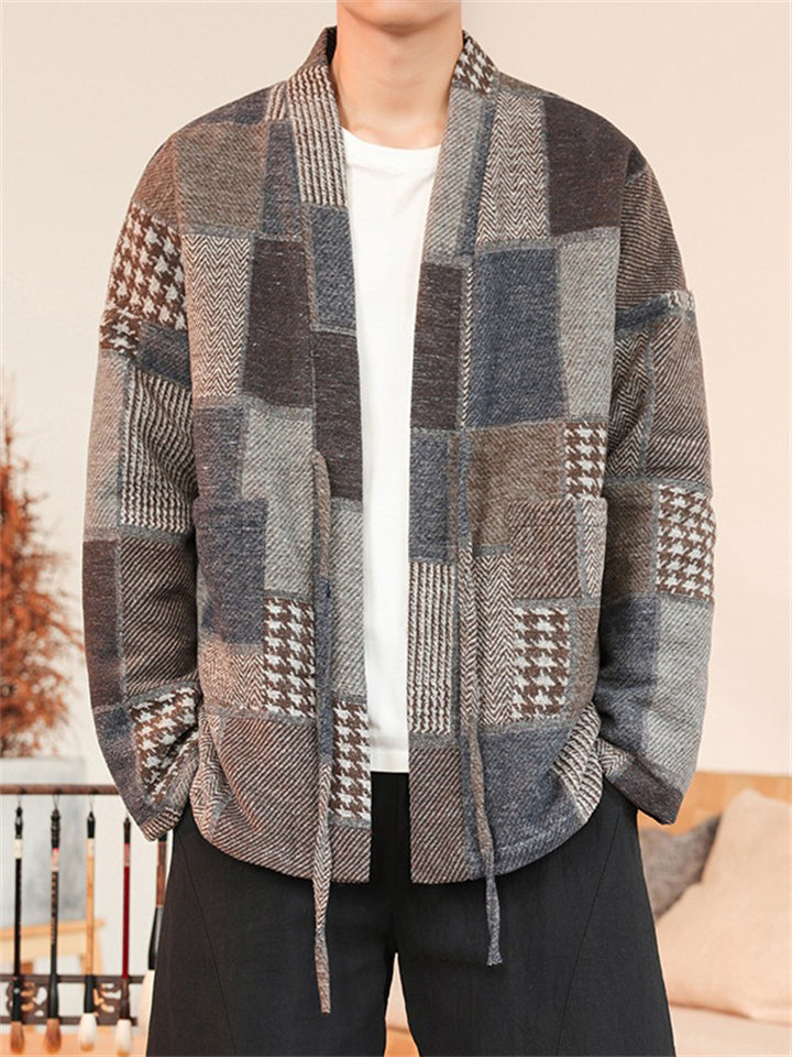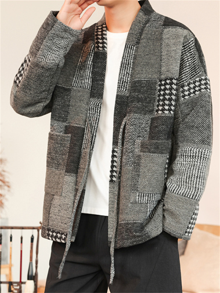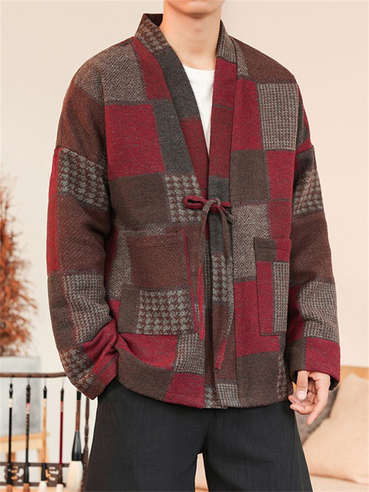 Men's Color Block Patchwork Front Lace Up Loose Jacket