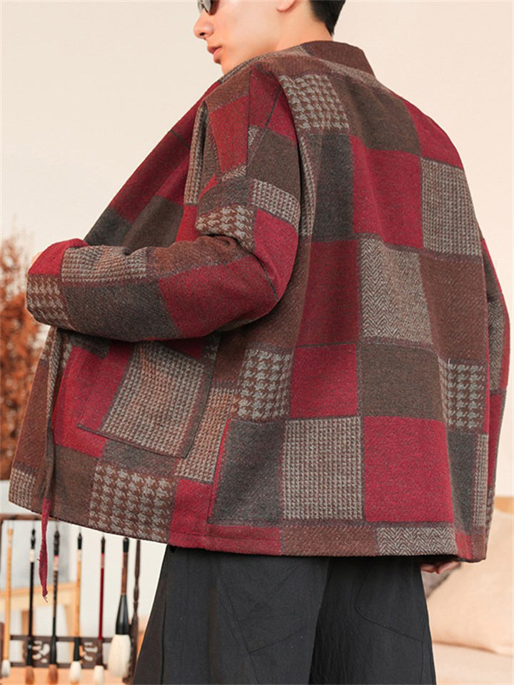 Men's Retro Chinese Style Contrast Stand Collar Corduroy Tangsuit Jackets