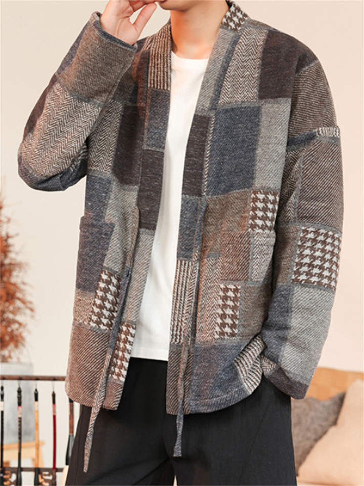 Men's Autumn Solid Color Corduroy Zen Style Lace Up Cardigan Jackets