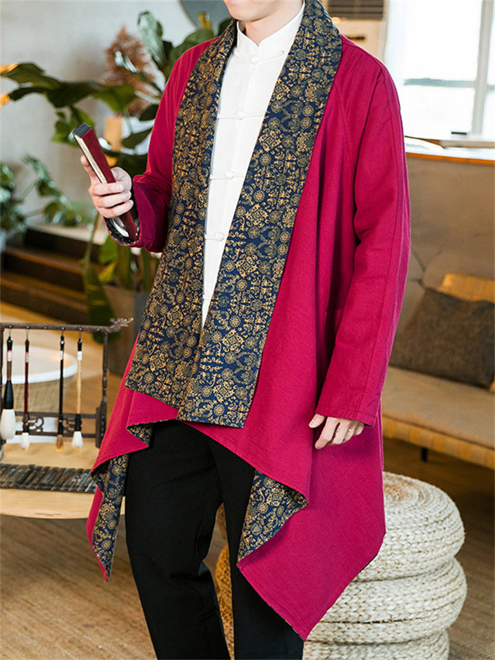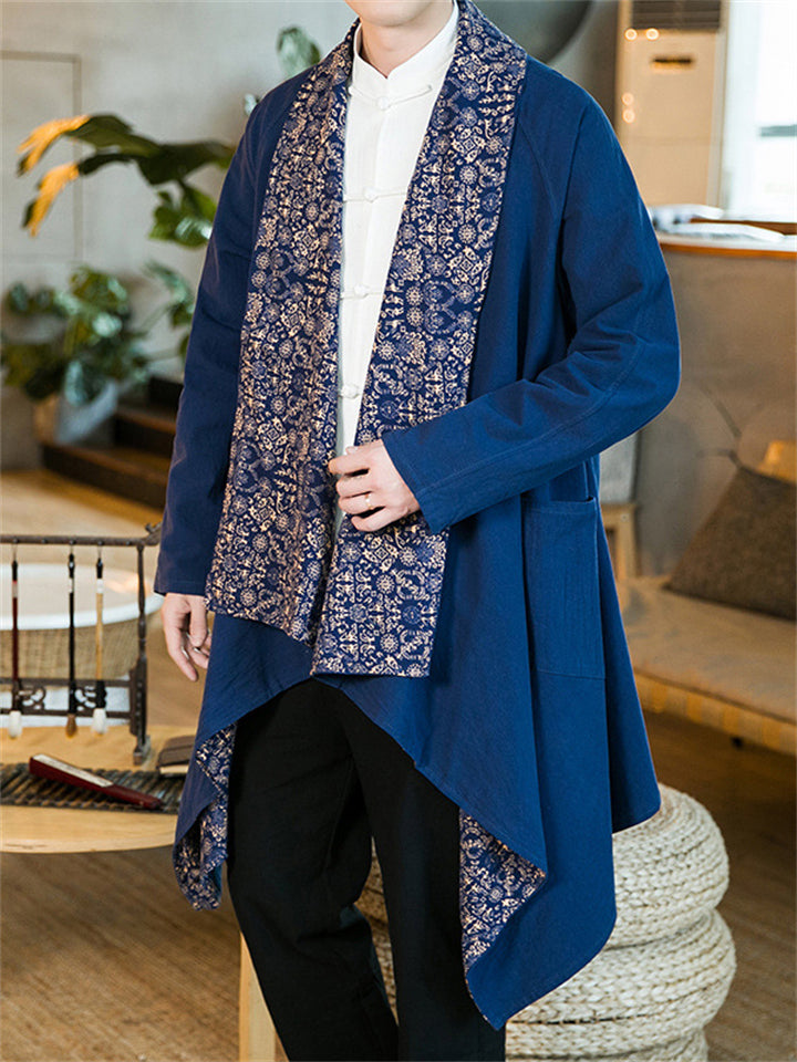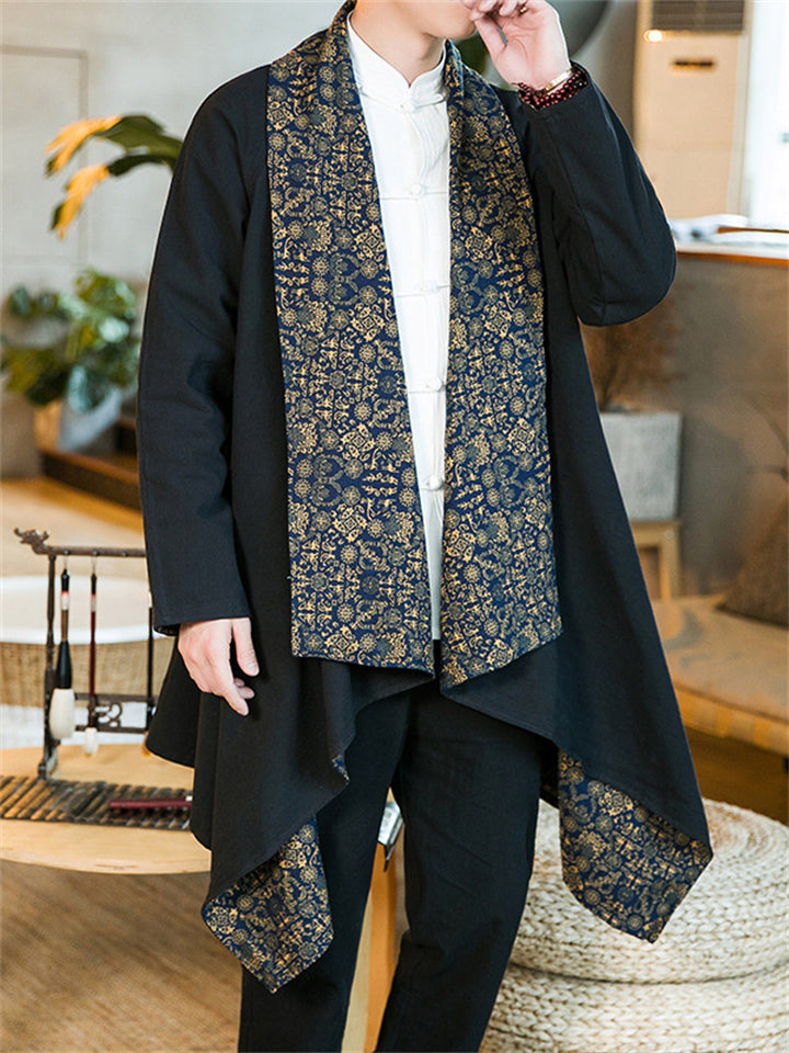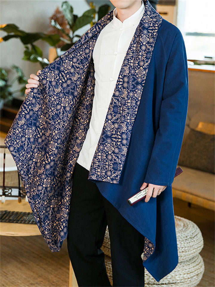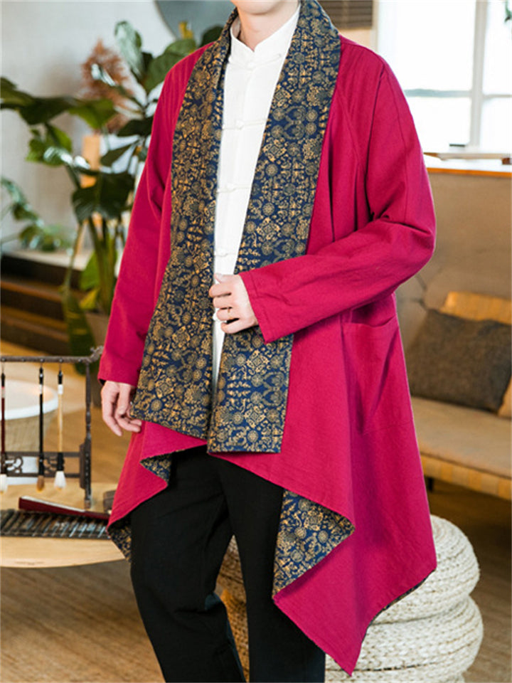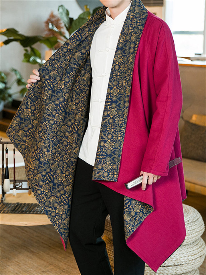 Men's Ethnic Style Print Reversible Irregular Hem Jacket