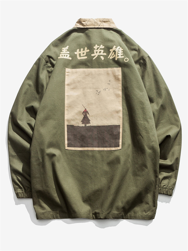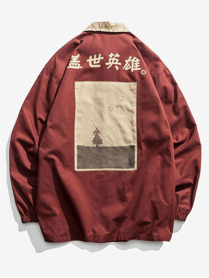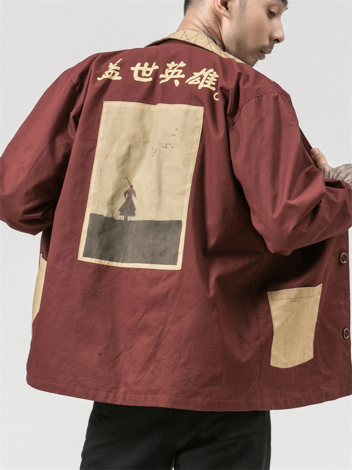 Men's Autumn Cartoon Loong Print Stand Collar Tangsuit Cardigan Jackets
