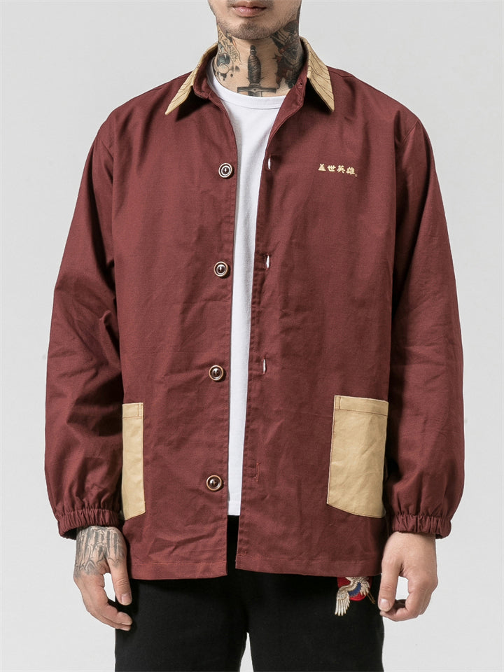Men's Autumn Chinese Style Corduroy Contrast Color Tangsuit Jackets