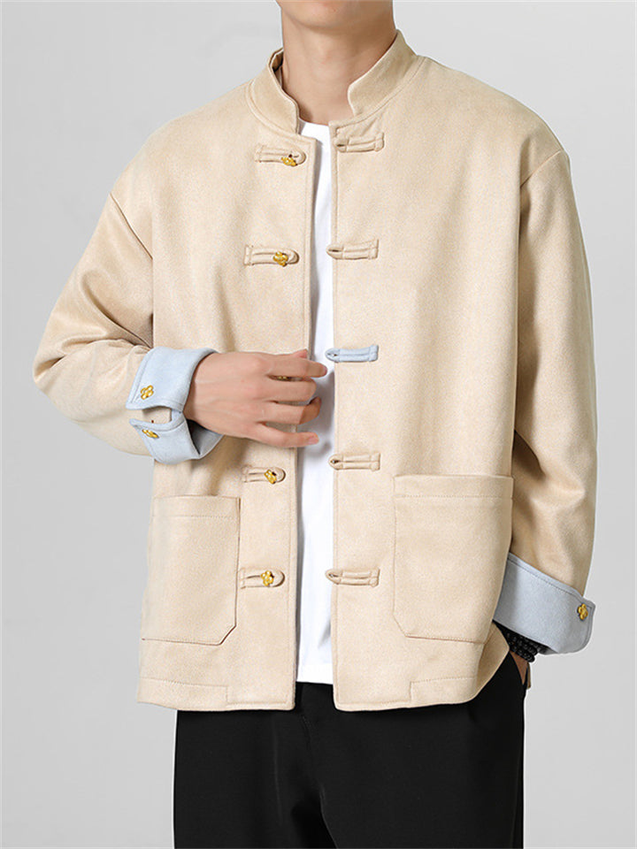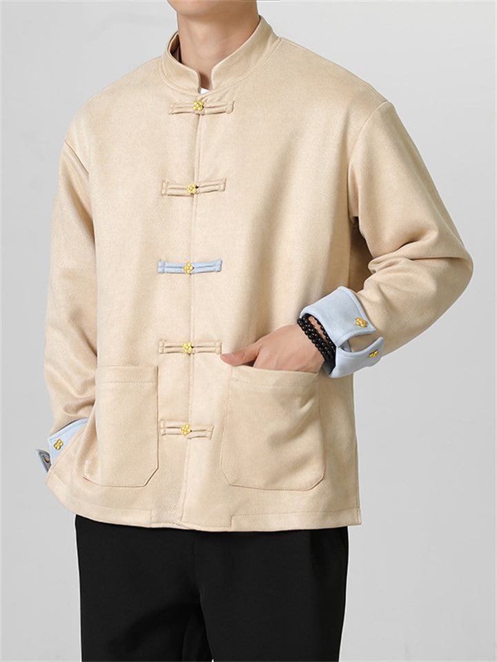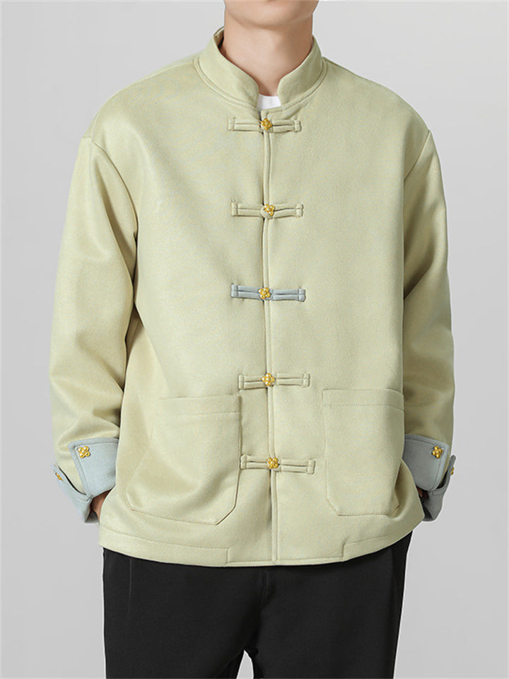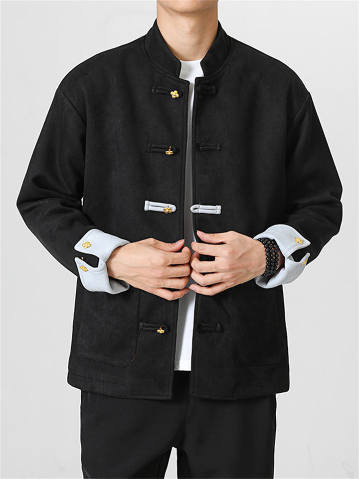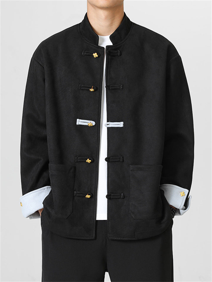 Men's Autumn Chinese Style Corduroy Contrast Color Tangsuit Jackets